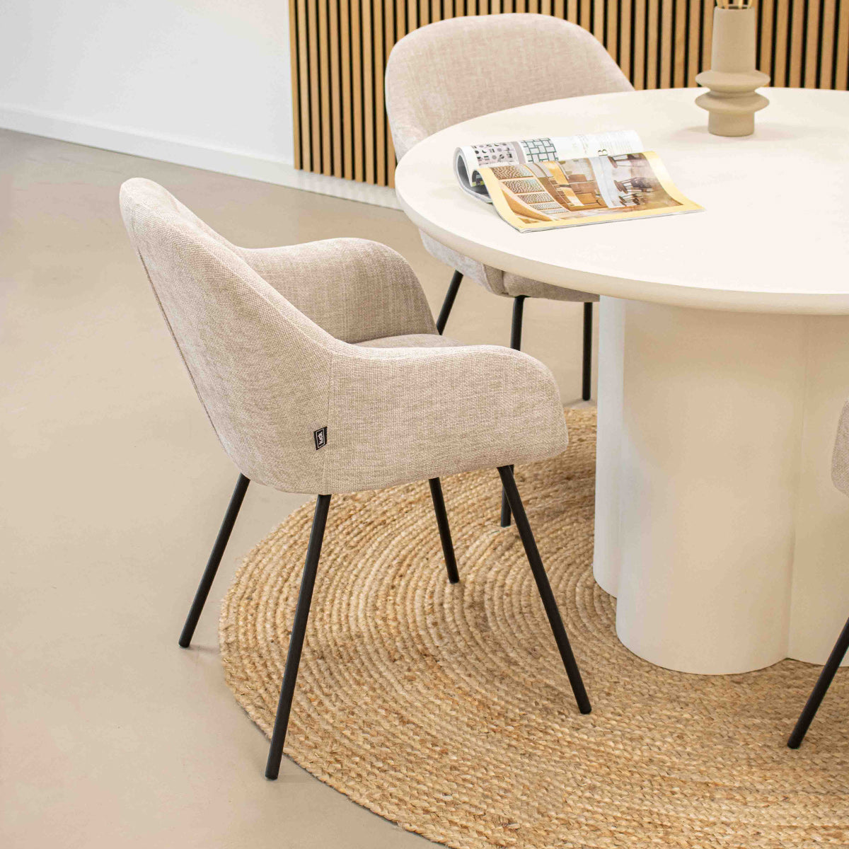 Op zoek naar een stijlvolle eetkamerstoel die comfort en design perfect in balans brengt? Dan is KICK eetkamerstoel ARDA precies wat je zoekt. Met zijn zachte textuurstof, uitnodigende rondingen en tijdloze uitstraling past ARDA in vrijwel ieder interieur, van modern tot klassiek. De comfortabele zitting en subtiele armleuningen zorgen ervoor dat je moeiteloos urenlang kan blijven zitten, of je nu dineert, werkt of borrelt.