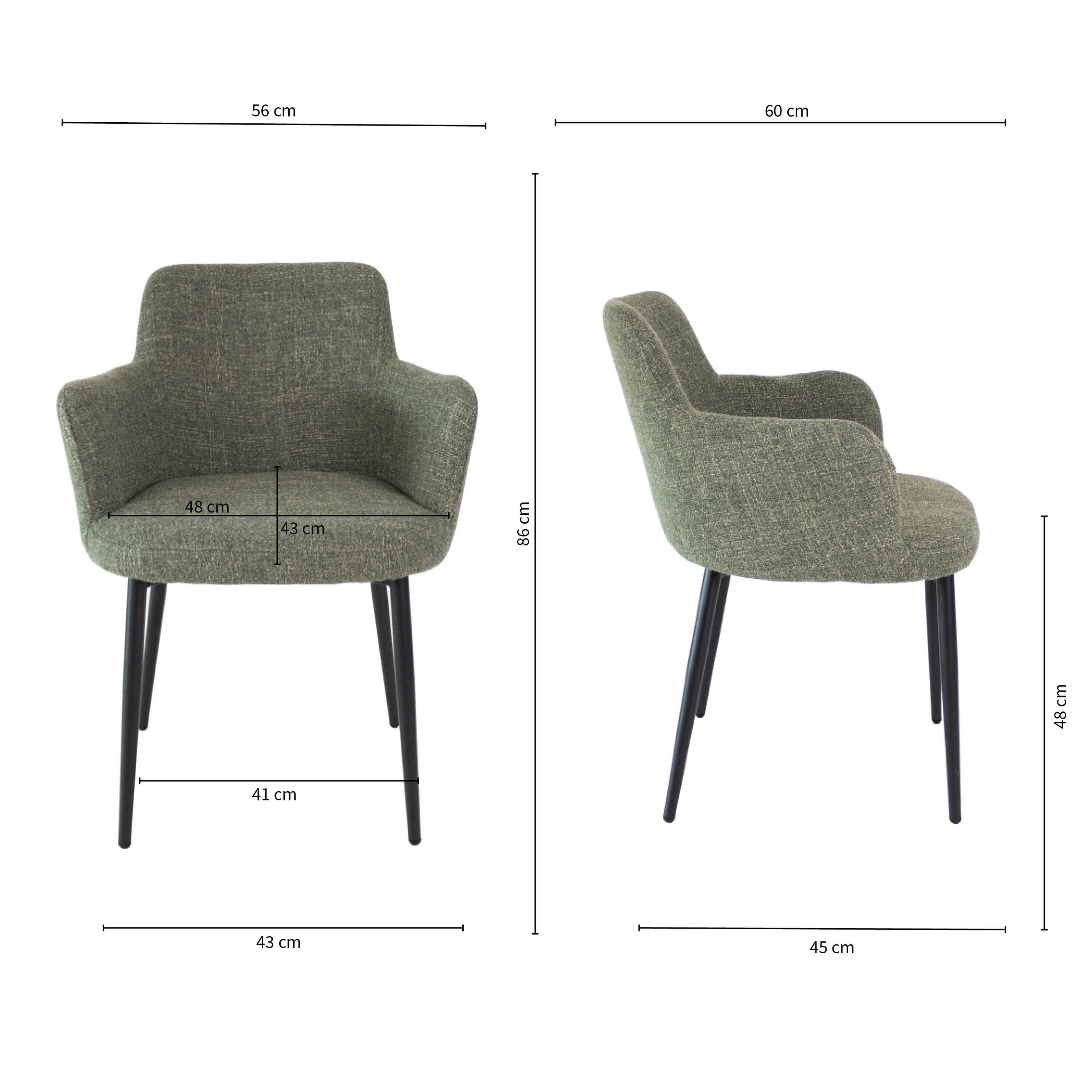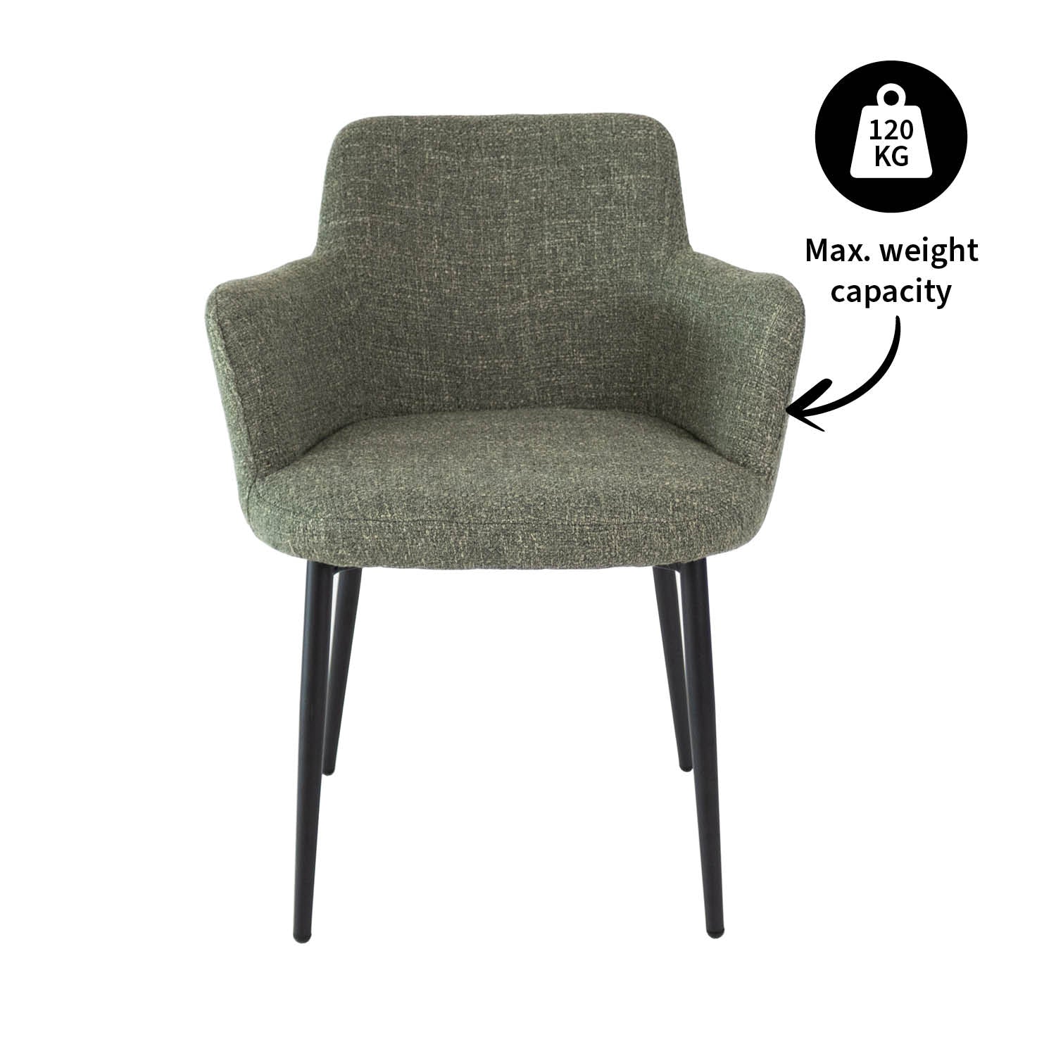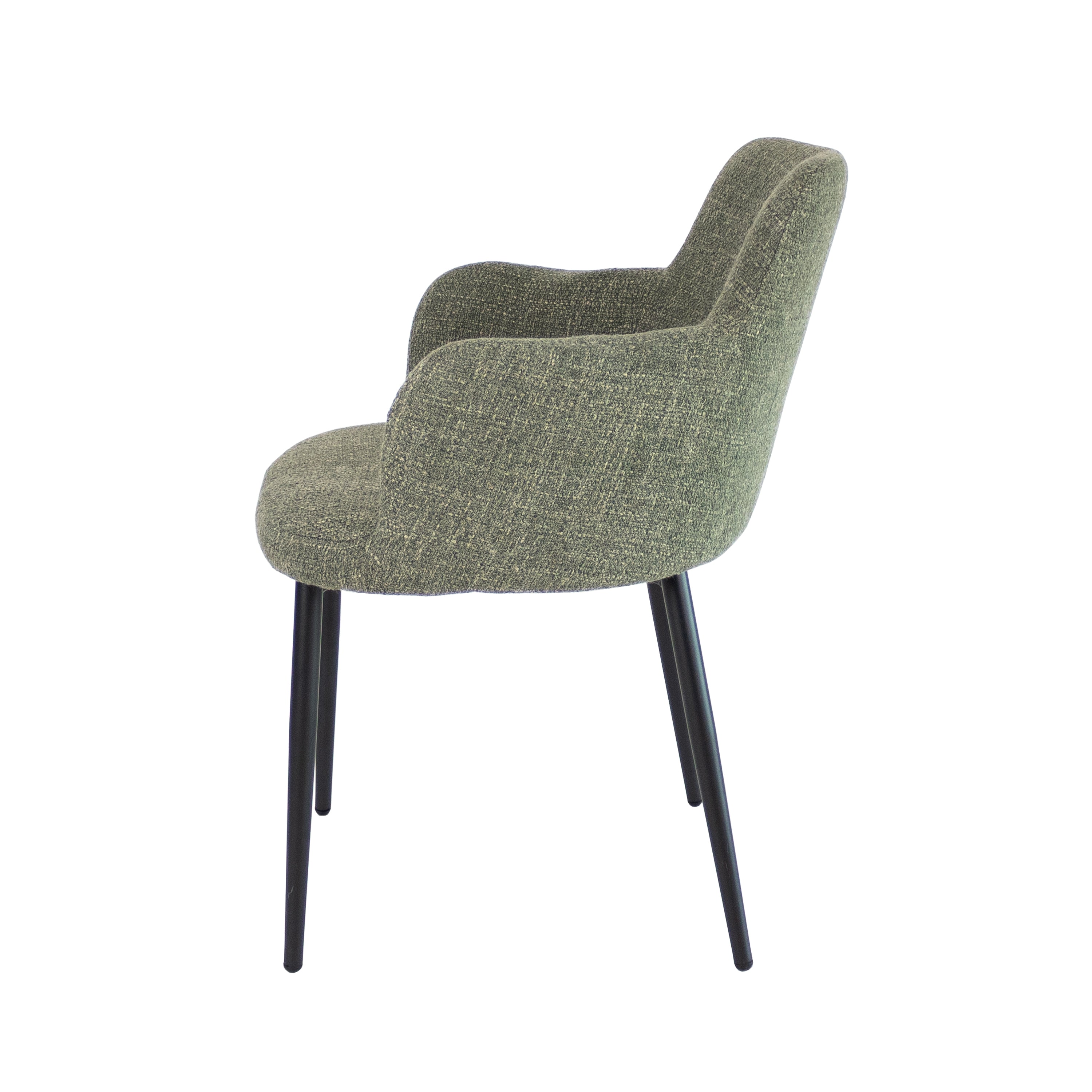 Met een uitnodigende textuurstof, stoer zwart metalen onderstel en eigentijds aflopende armleuningen, straalt Emma elegantie uit.