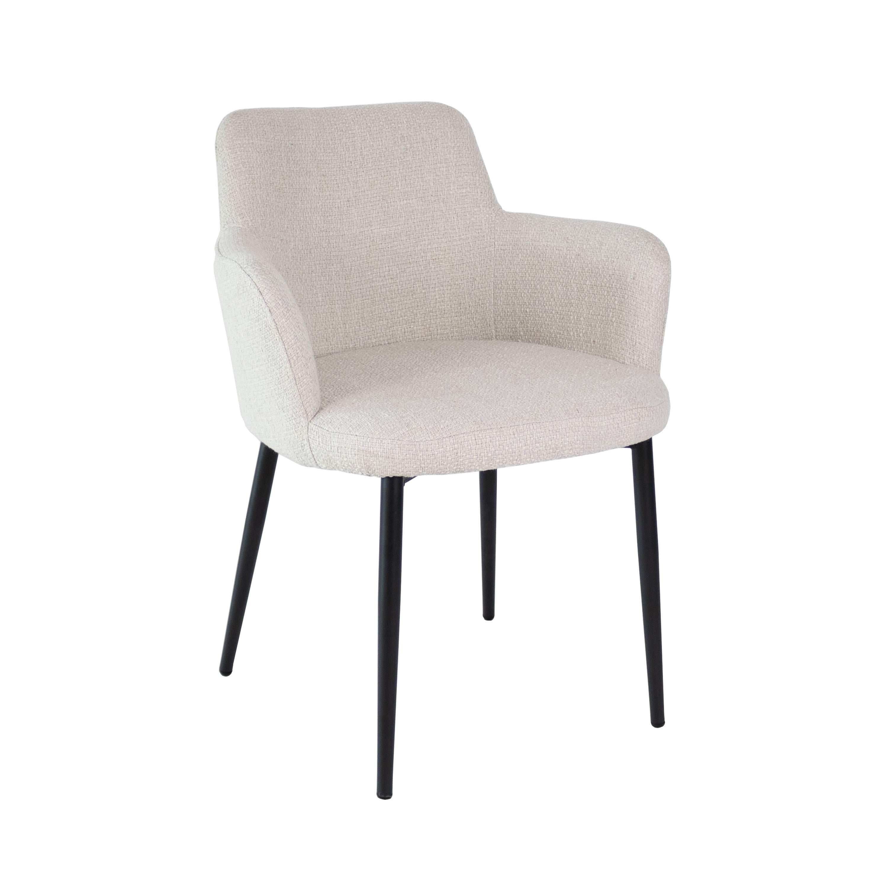 Met een uitnodigende textuurstof, stoer zwart metalen onderstel en eigentijds aflopende armleuningen, straalt Emma elegantie uit.