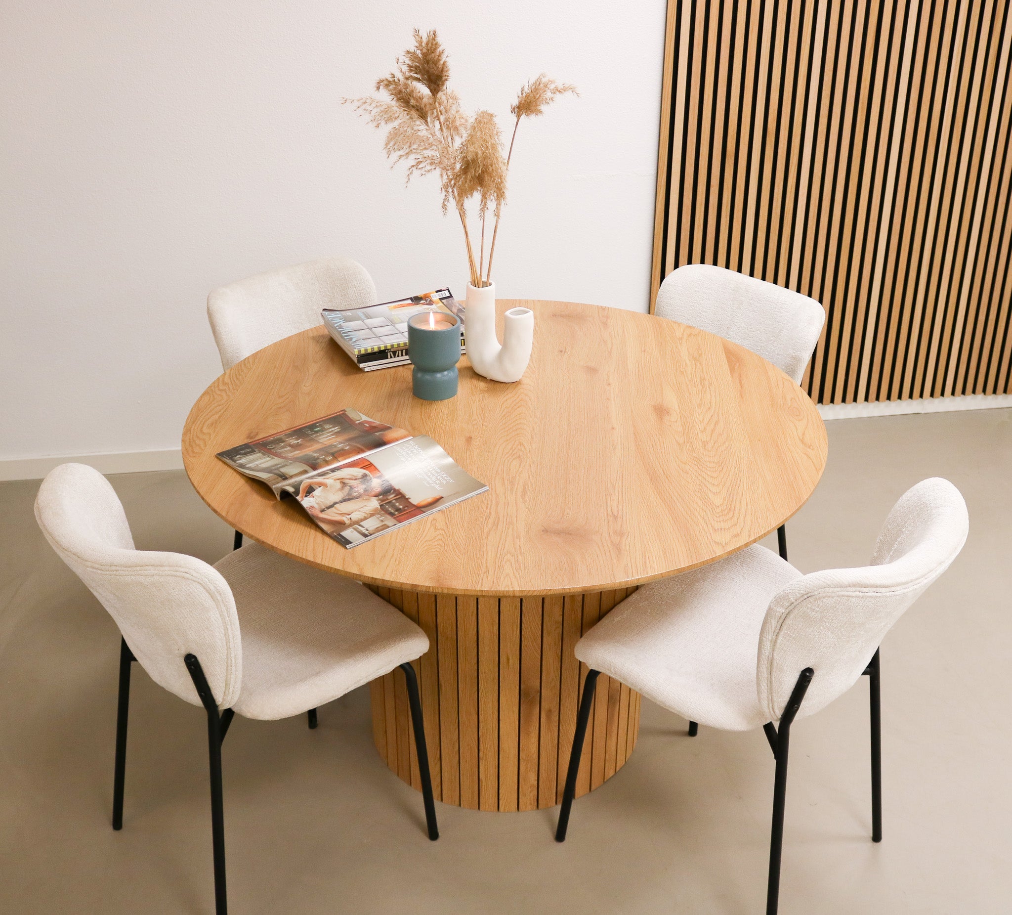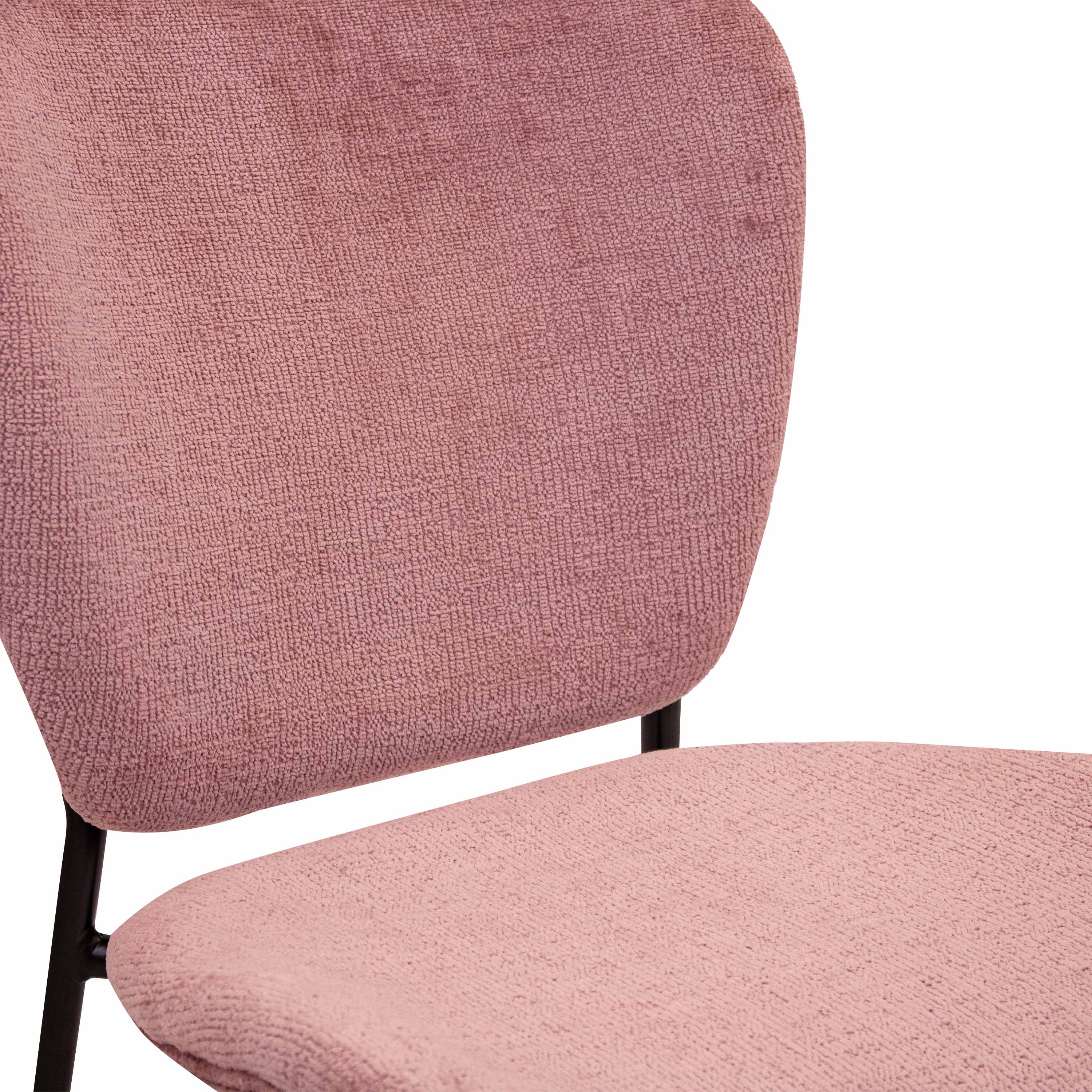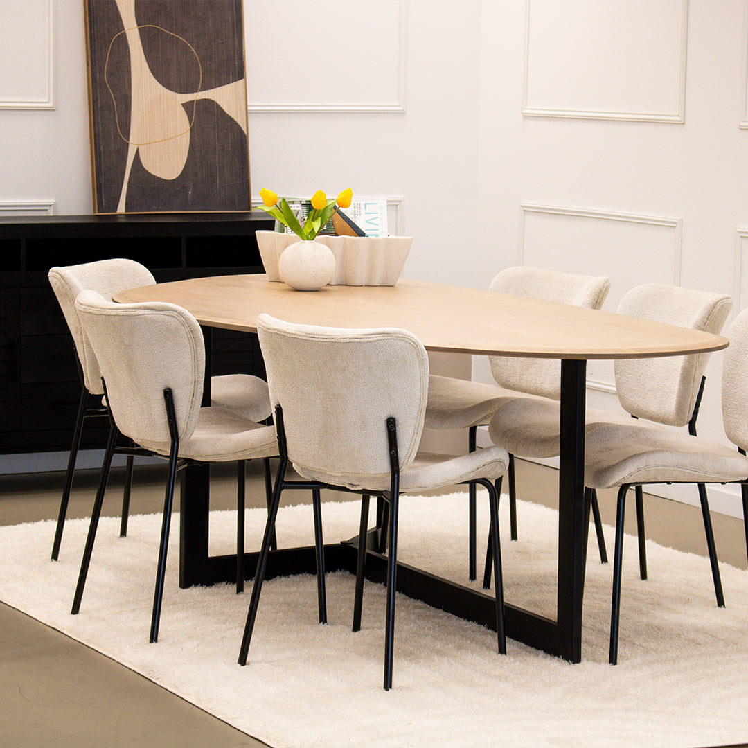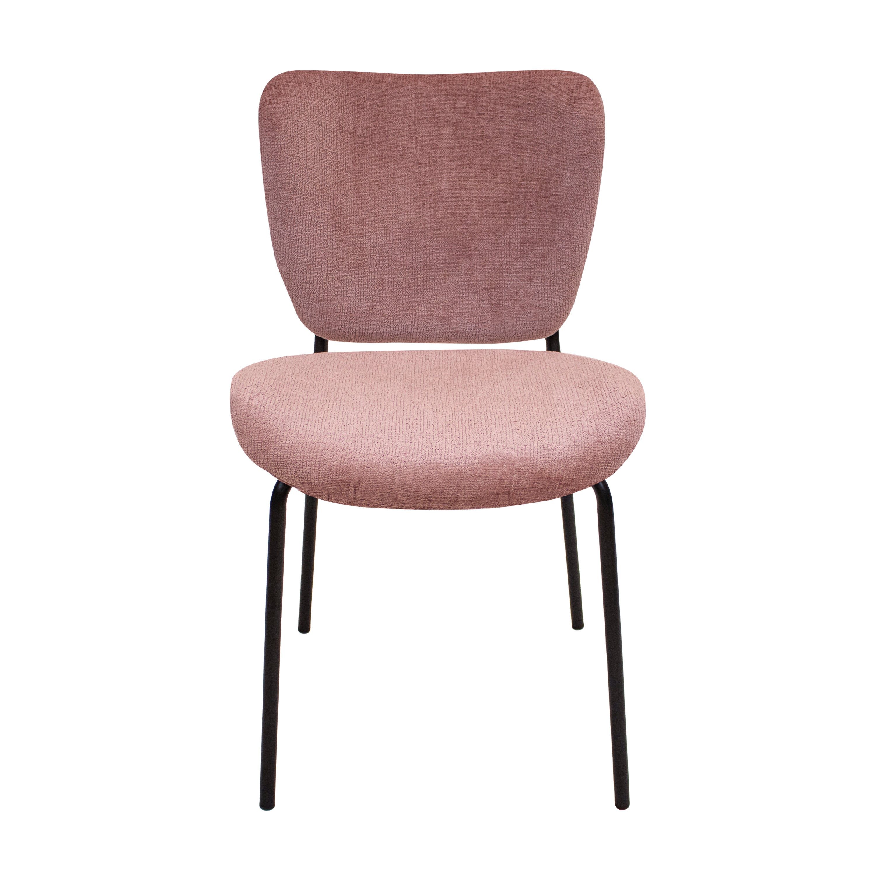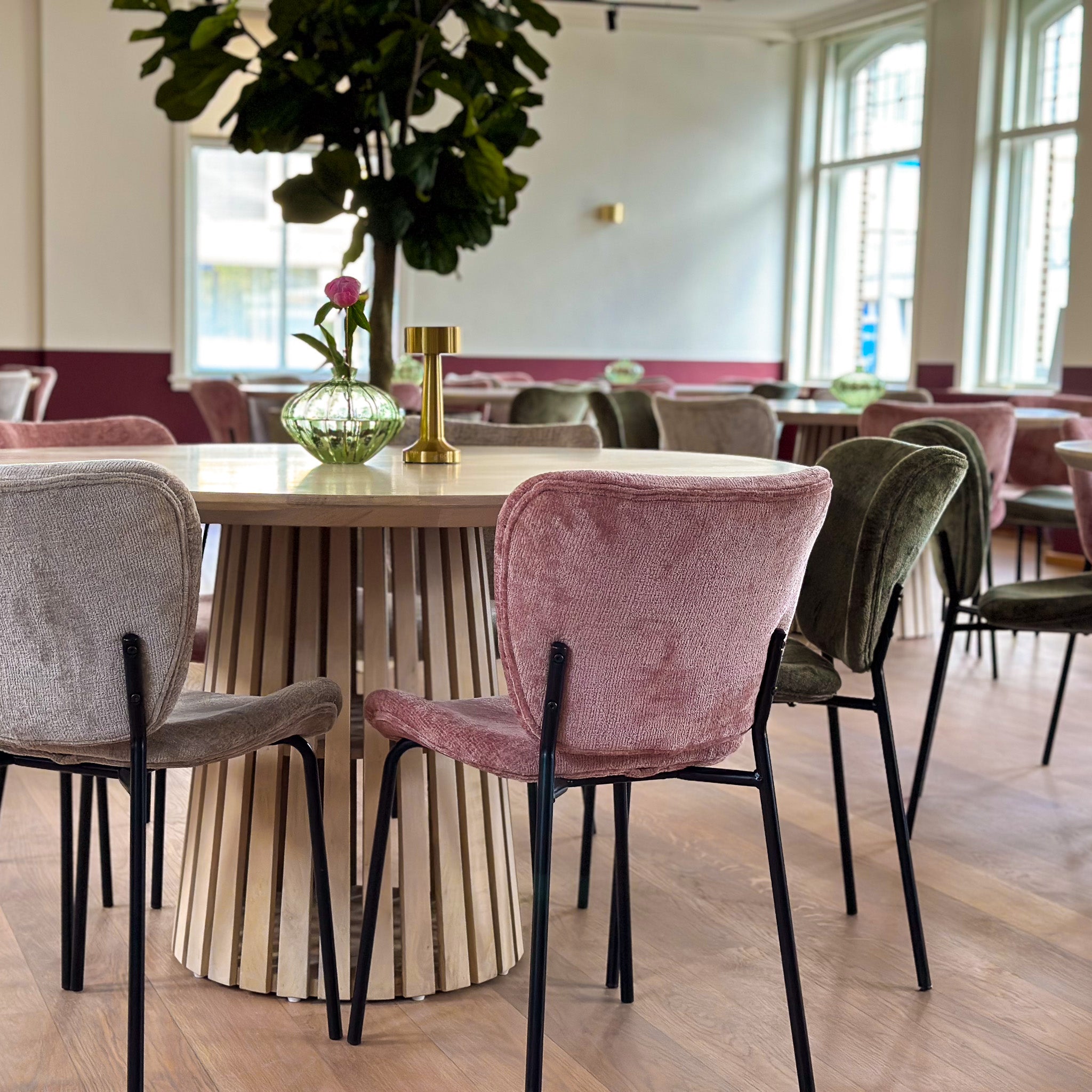 Laat je omarmen door de comfortabele elegantie van eetkamerstoel Ize! Ize is bekleed met een zachte Chenille-stof en heeft een vrije rugleuning die rust op een stoer zwart metalen onderstel. Deze fijne eetkamerstoel heeft stijl, sfeer en een ultiem zitgemak.
