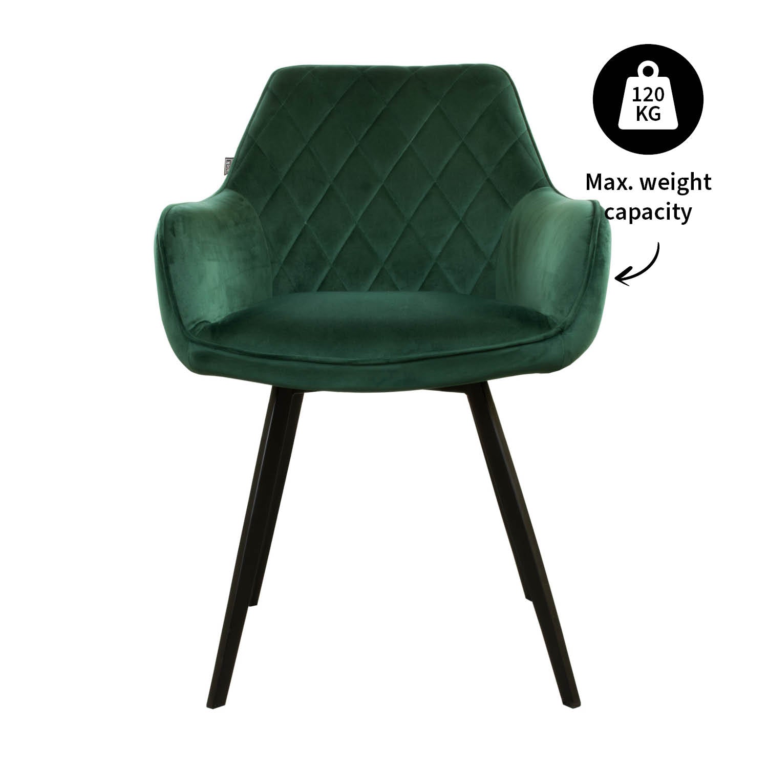 De eetkamerstoel Karl in de kleur donkergroen heeft een veerkrachtige zit en rug en biedt een zacht en tevens geweldig zitcomfort. Verkrijgbaar in 7 prachtige kleuren dus je hoeft alleen nog maar te kiezen.