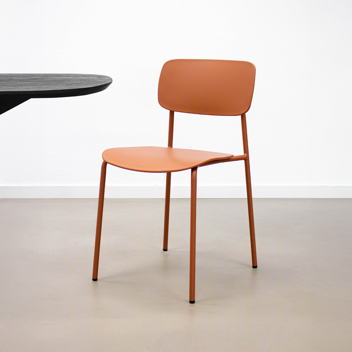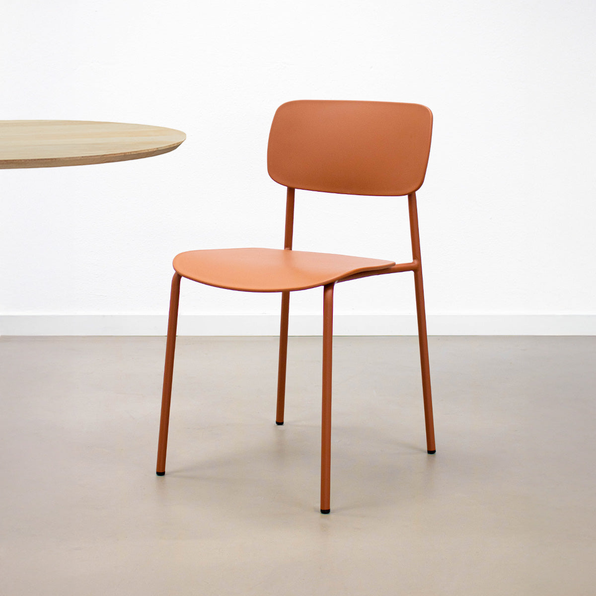 KICK eetkamerstoel LIO: elegant, minimalistisch, tijdloos en helemaal van nu! Op zoek naar een stoel die jouw interieur direct een frisse boost geeft? Maak kennis met eetkamerstoel LIO, een moderne schoolstoel met een knipoog naar vroeger. LIO is uitgevoerd in stevig kunststof, heeft een slank metalen frame en is verkrijgbaar in diverse toffe kleuren. Perfect voor aan de eettafel, op kantoor of als eyecatcher in je interieur. Dankzij het slanke frame en de opening tussen de rugleuning en de zitting, heeft LIO een luchtige uitstraling. Daarnaast neemt deze smalle eetkamerstoel weinig ruimte in en is het daardoor de ideale keuze voor in een kleine eethoek. LIO is zonder armleuningen ontworpen, waardoor er meer stoelen aan de eettafel passen.