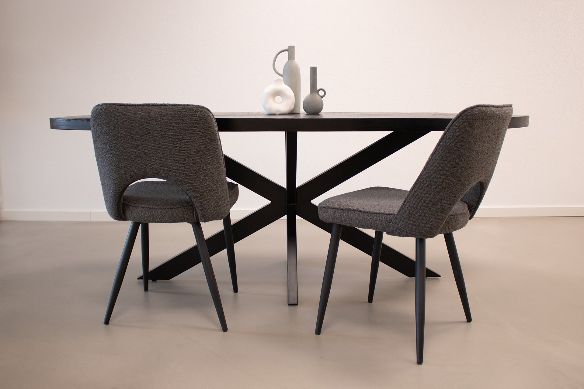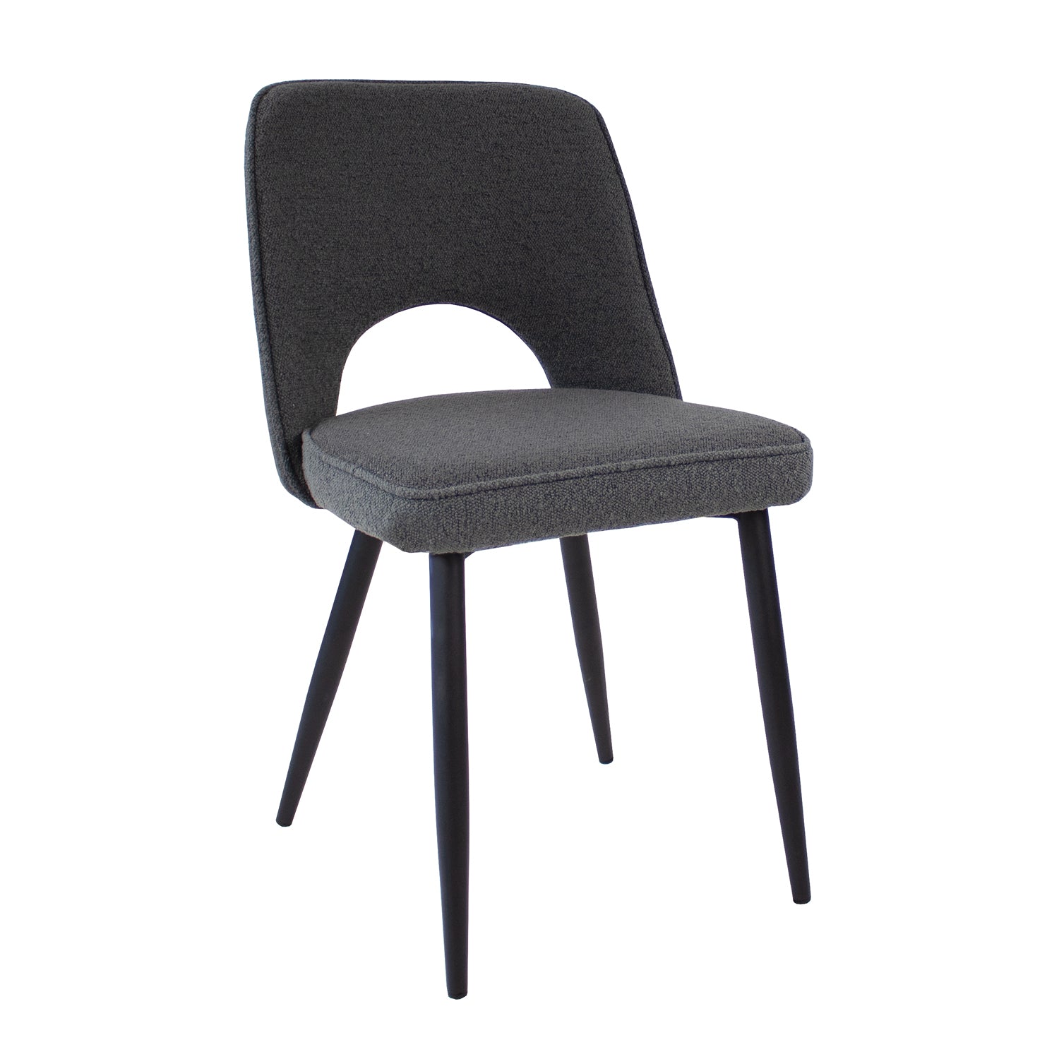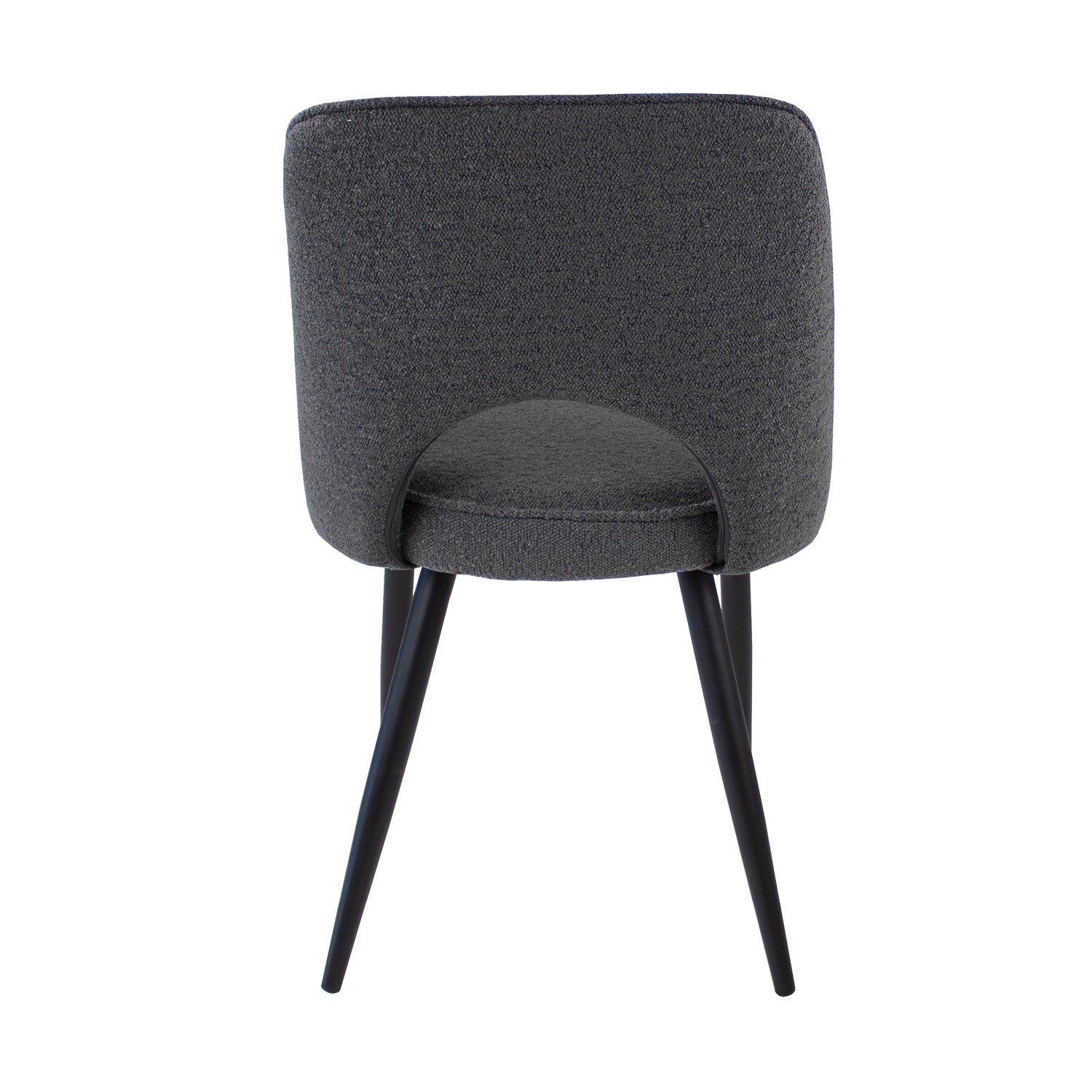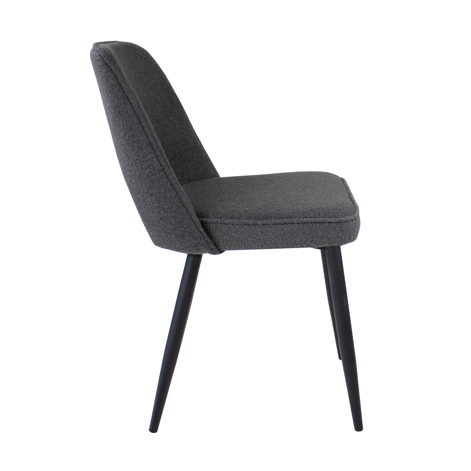 Kick Eetkamerstoel Mare - Donkergrijs MEET your new friend MARE! De perfecte combinatie van stoer, elegant en lef, dat is MARE. Eetkamerstoel MARE heeft een zwart stalen frame met een stevige en comfortabele zitting welke bekleed is met een fijne bouclé s