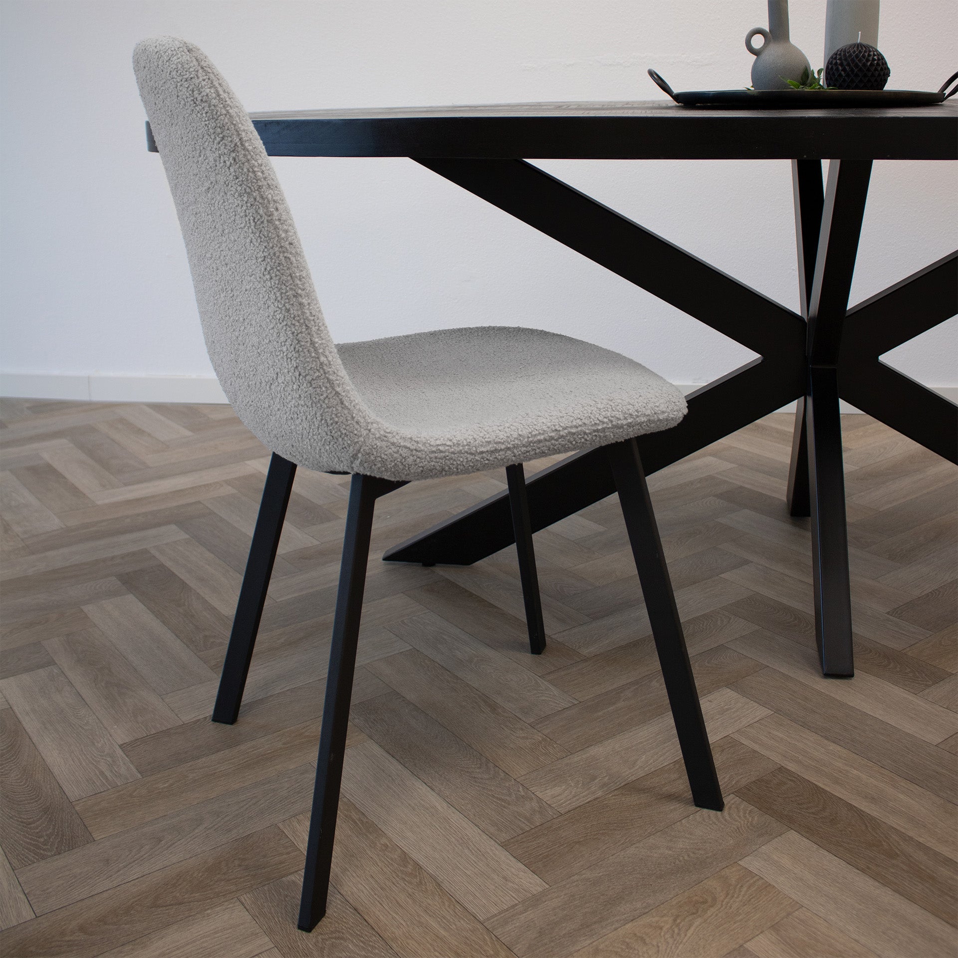 Kick Eetkamerstoel Ted - Grijs THIS IS TED! De Kick Eetkamerstoel Ted doet zijn naam eer aan door de zachte zitting bekleed met een toffe teddy stof.