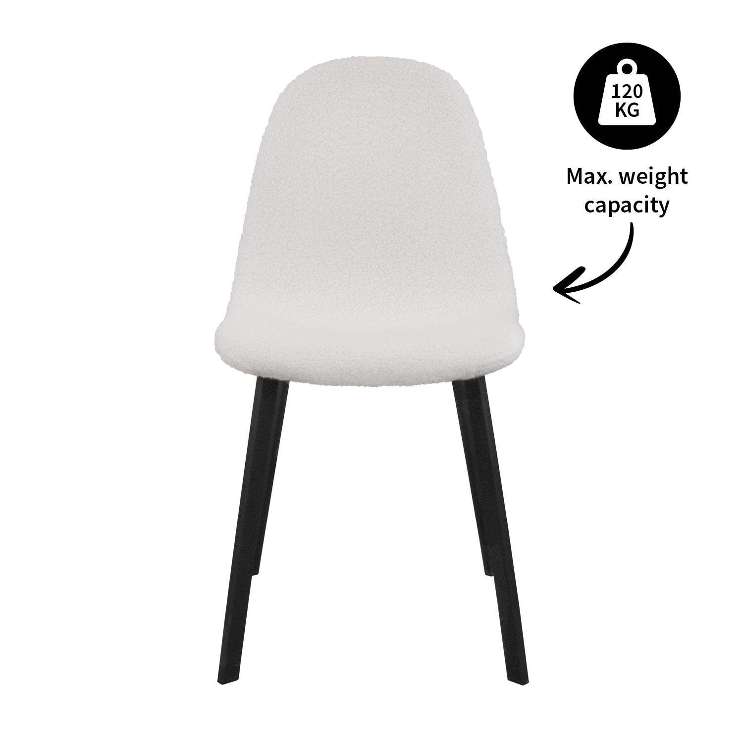 Kick Eetkamerstoel Ted - Wit THIS IS TED! De Kick Eetkamerstoel Ted doet zijn naam eer aan door de zachte zitting bekleed met een toffe teddy stof.