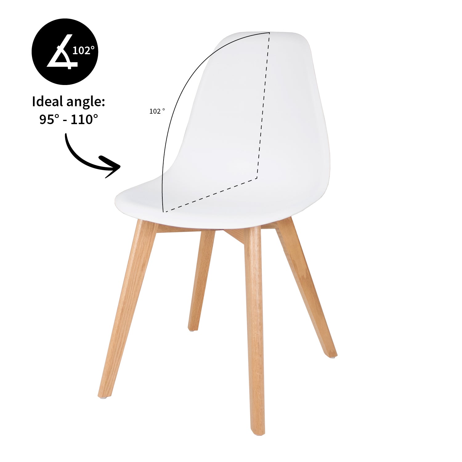 De hoogte van de zitting, gemeten vanaf de vloer. De ideale zithoogte bevindt zich tussen de 40 en 46 cm. Je zit het lekkerst met een ruimte van ongeveer 20 cm, tussen de stoelzitting en de onderkant van het tafelblad.