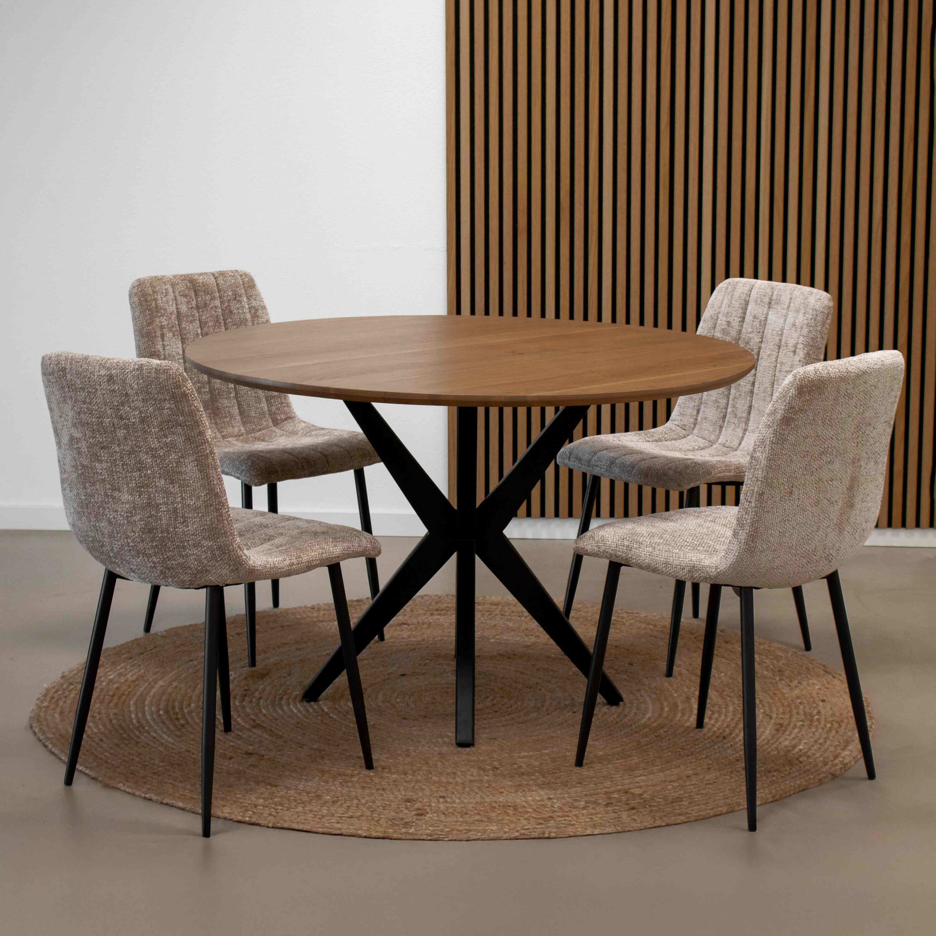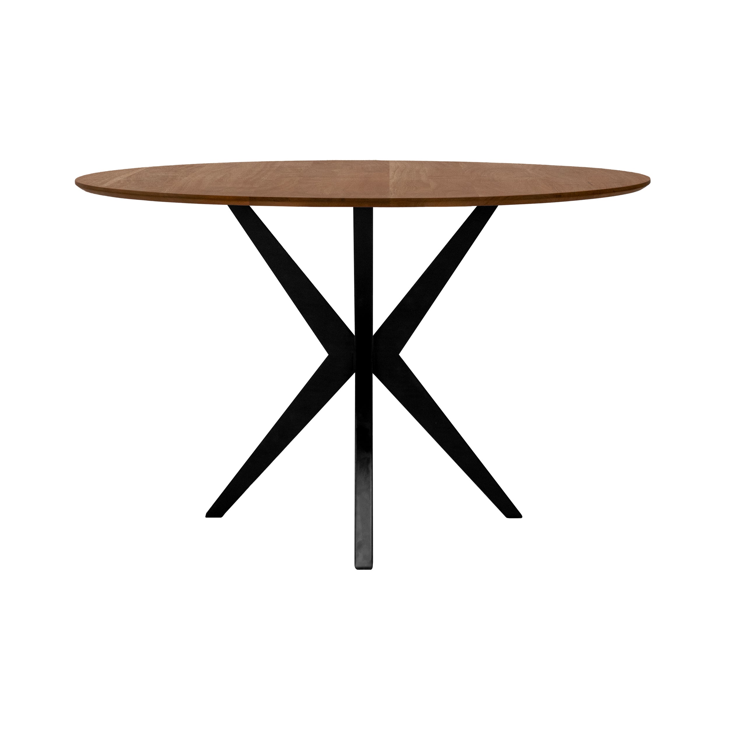 Meet Havard, functioneel en stijlvol in één. Deze ronde eettafel komt in diverse interieurstijlen perfect tot zijn recht. Het tafelblad is gemaakt van duurzaam acaciahout afgewerkt met een laklaag en rust op een stevig, zwart metalen X-frame.