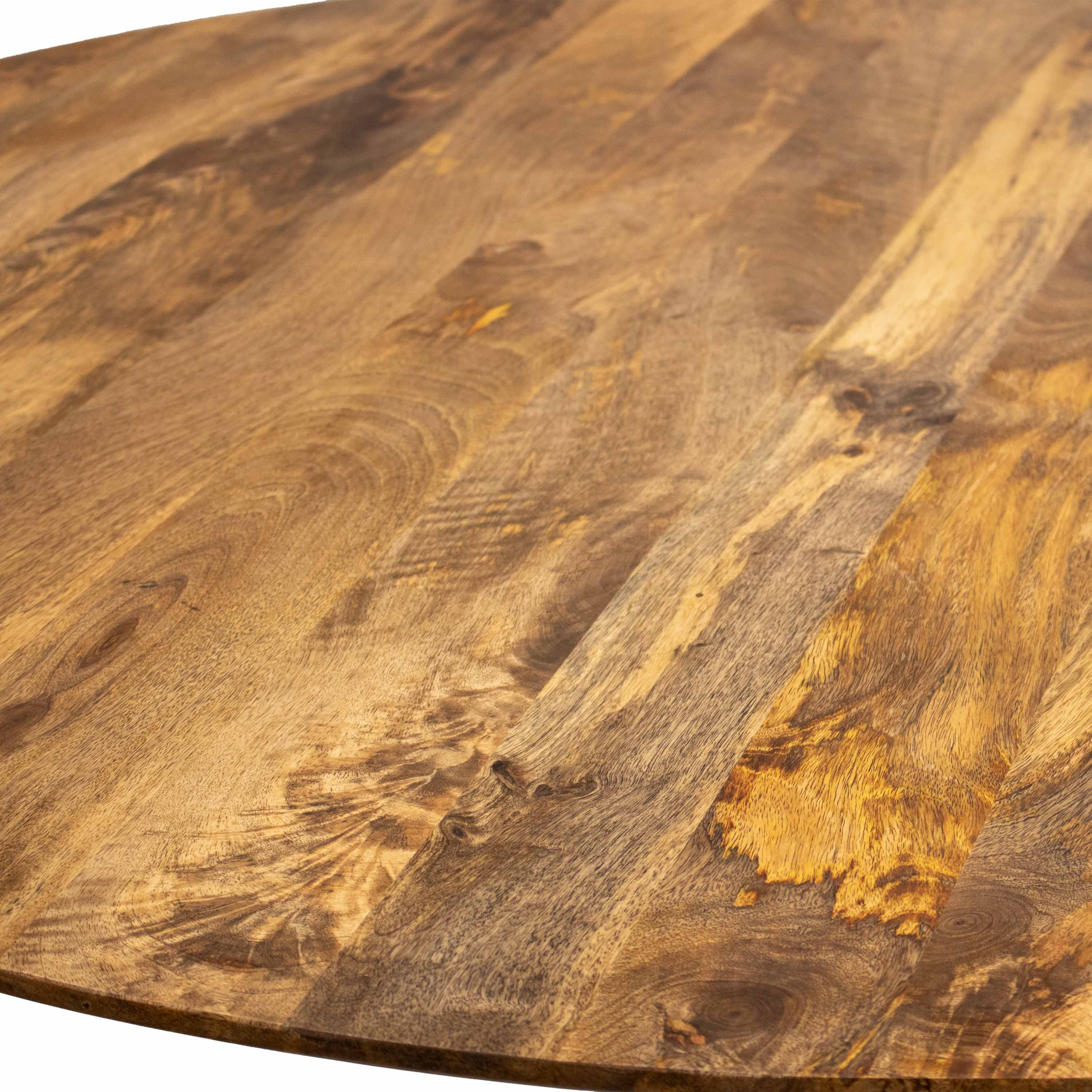 Meet Jake! Met deze moderne eettafel geef je jouw interieur een echte boost. Het ronde tafelblad is gemaakt van duurzaam mangohout en is strak afgewerkt. Het blad rust op het slanke, zwart stalen X-frame wat de tafel een stijlvolle, industriële uitstraling geeft.