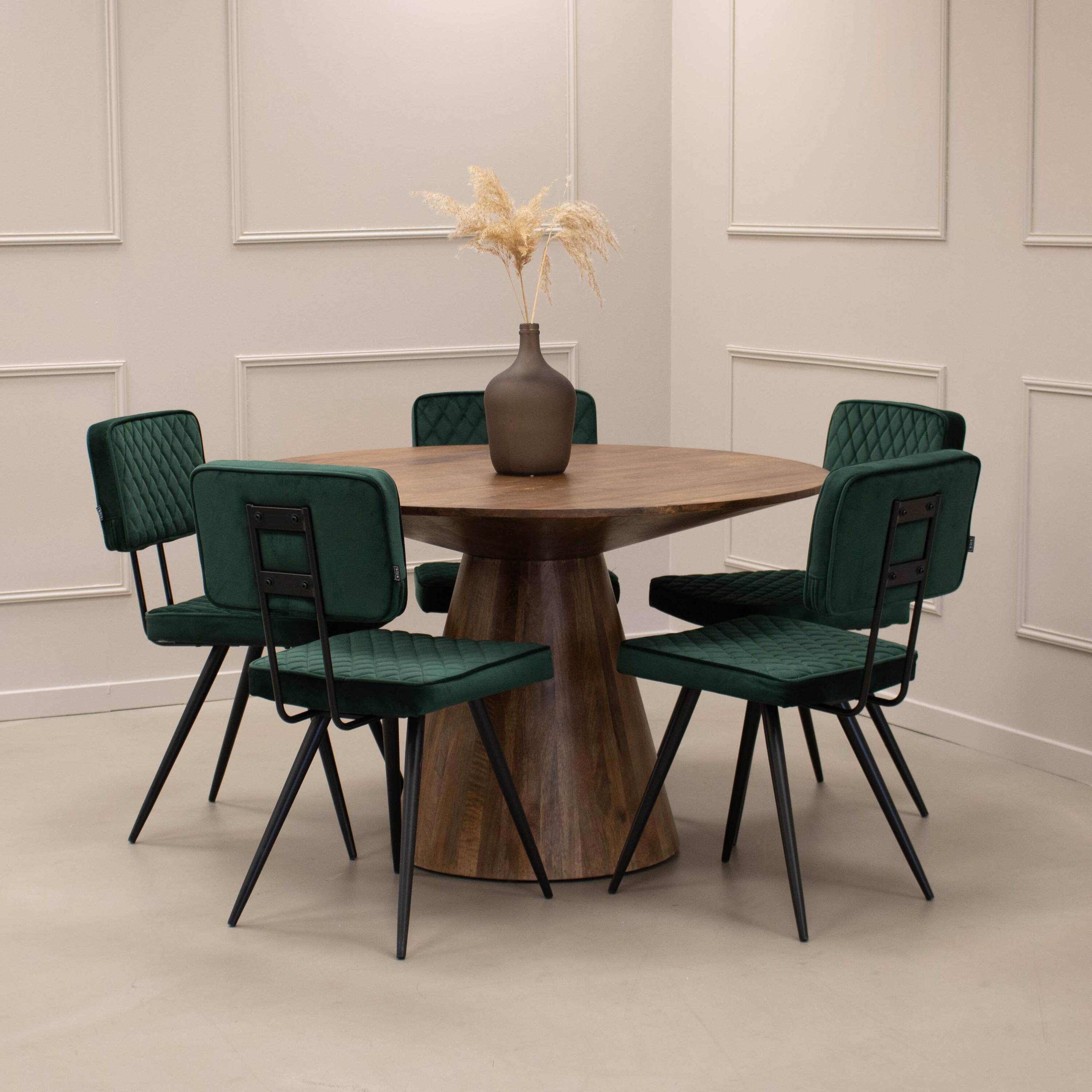 Ontdek de stijlvolle ronde eetkamertafel Joe, gemaakt van duurzaam mangohout.