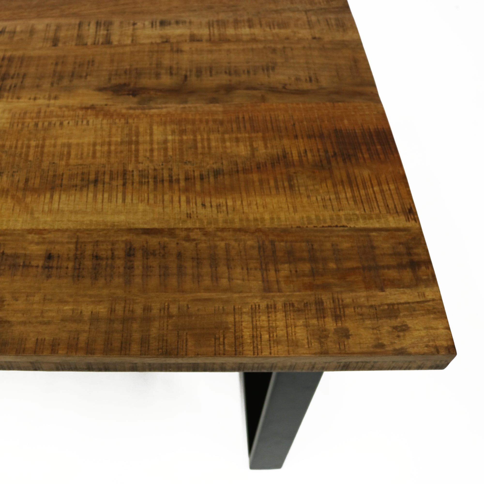 Kick eetkamertafel Yuri 200cm is een stoere tafel met een mango houten blad i.c.m. een zwart metalen onderstel. U-poot.