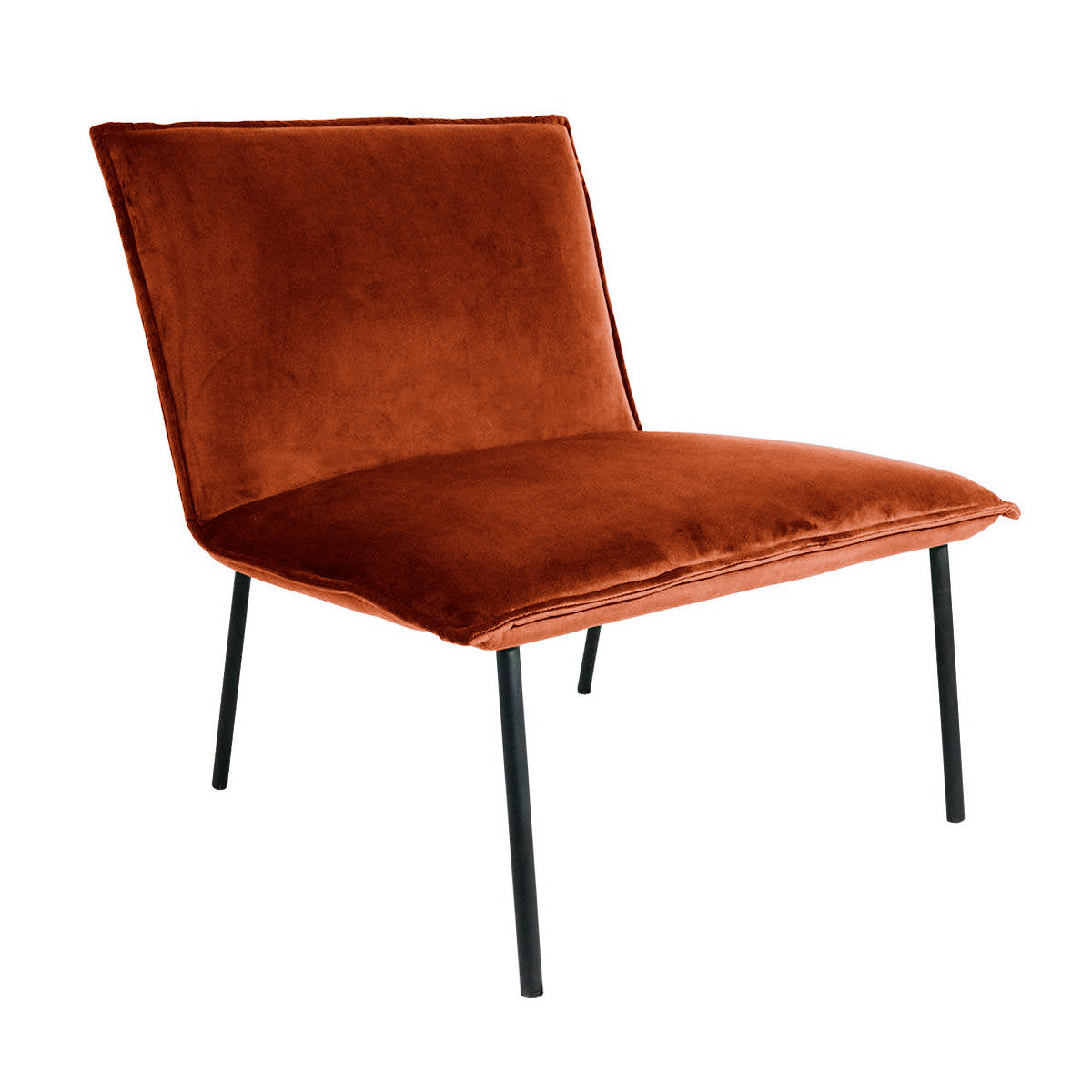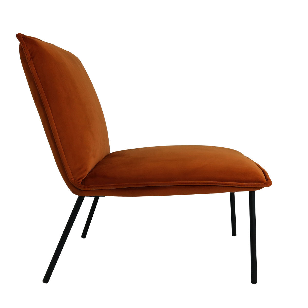 Kick Fauteuil Velvet Lola - Oranje Fauteuil Lola is verkrijgbaar in diverse kleuren en met zijn velvet stof en stalen poot is hij precies wat je nodig hebt!
