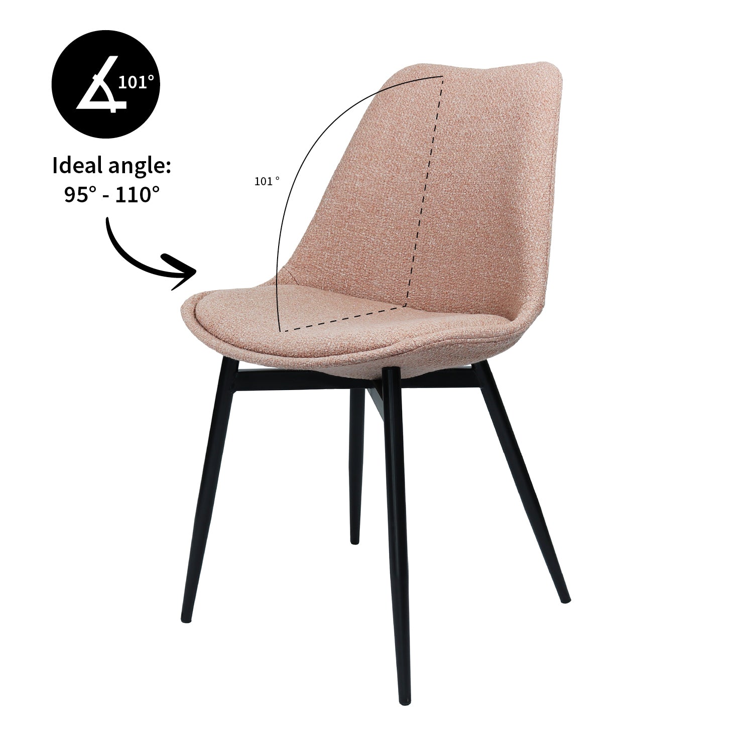 De hoogte van de zitting, gemeten vanaf de vloer. De ideale zithoogte bevindt zich tussen de 40 en 46 cm. Je zit het lekkerst met een ruimte van ongeveer 20 cm, tussen de stoelzitting en de onderkant van het tafelblad.