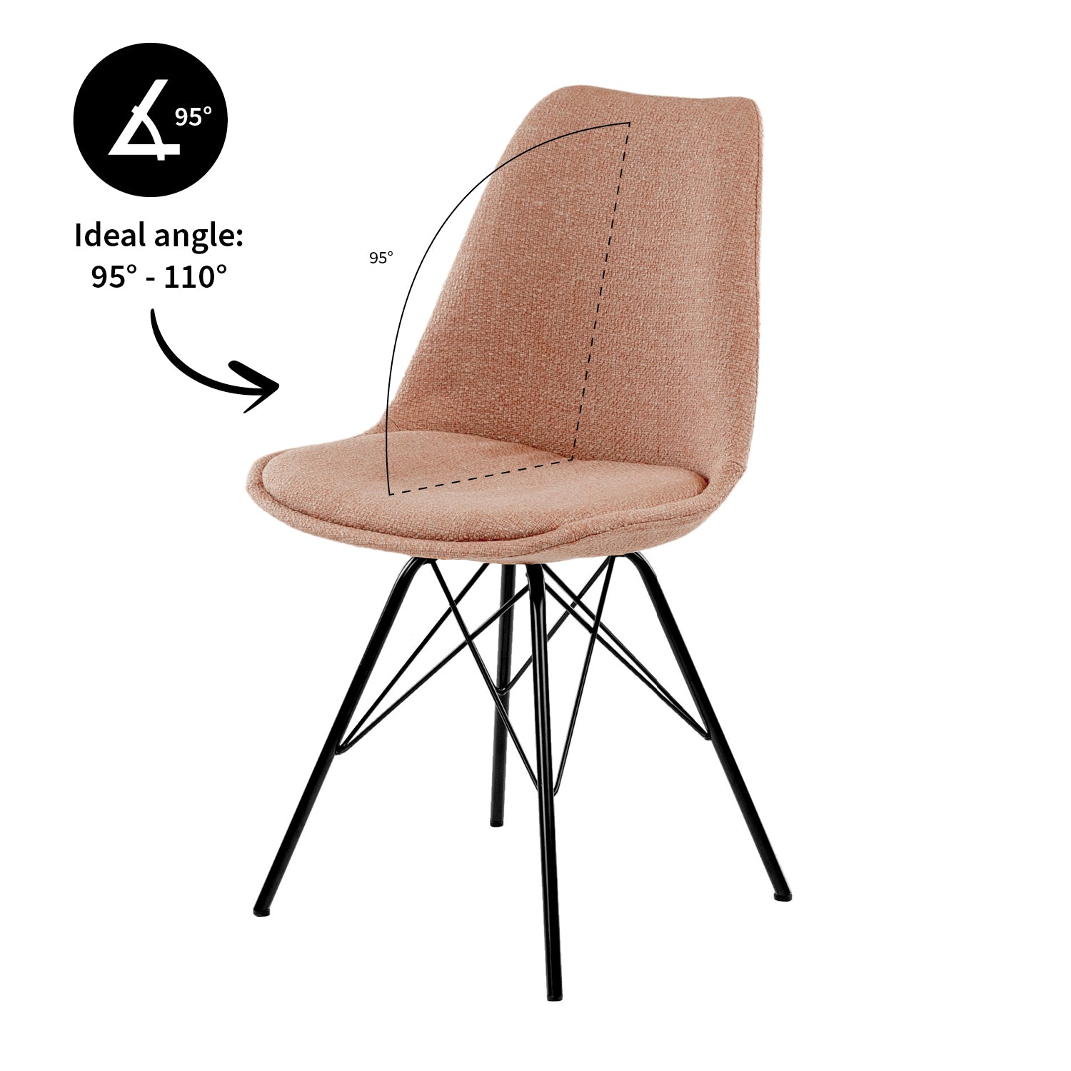 De hoogte van de zitting, gemeten vanaf de vloer. De ideale zithoogte bevindt zich tussen de 40 en 46 cm. Je zit het lekkerst met een ruimte van ongeveer 20 cm, tussen de stoelzitting en de onderkant van het tafelblad.