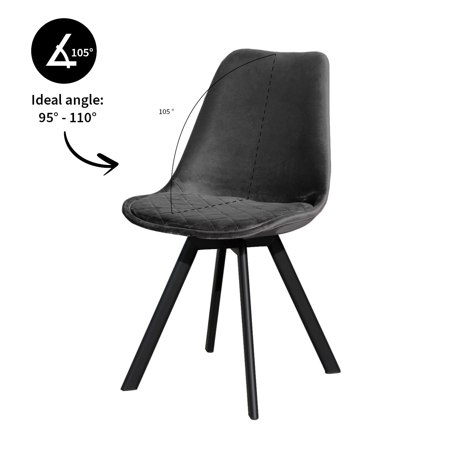 De hoogte van de zitting, gemeten vanaf de vloer. De ideale zithoogte bevindt zich tussen de 40 en 46 cm. Je zit het lekkerst met een ruimte van ongeveer 20 cm, tussen de stoelzitting en de onderkant van het tafelblad.