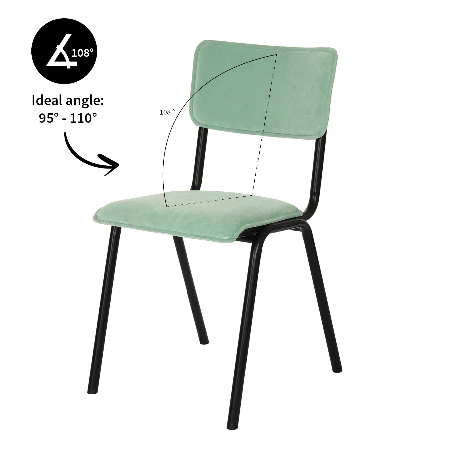 De hoogte van de zitting, gemeten vanaf de vloer. De ideale zithoogte bevindt zich tussen de 40 en 46 cm. Je zit het lekkerst met een ruimte van ongeveer 20 cm, tussen de stoelzitting en de onderkant van het tafelblad.