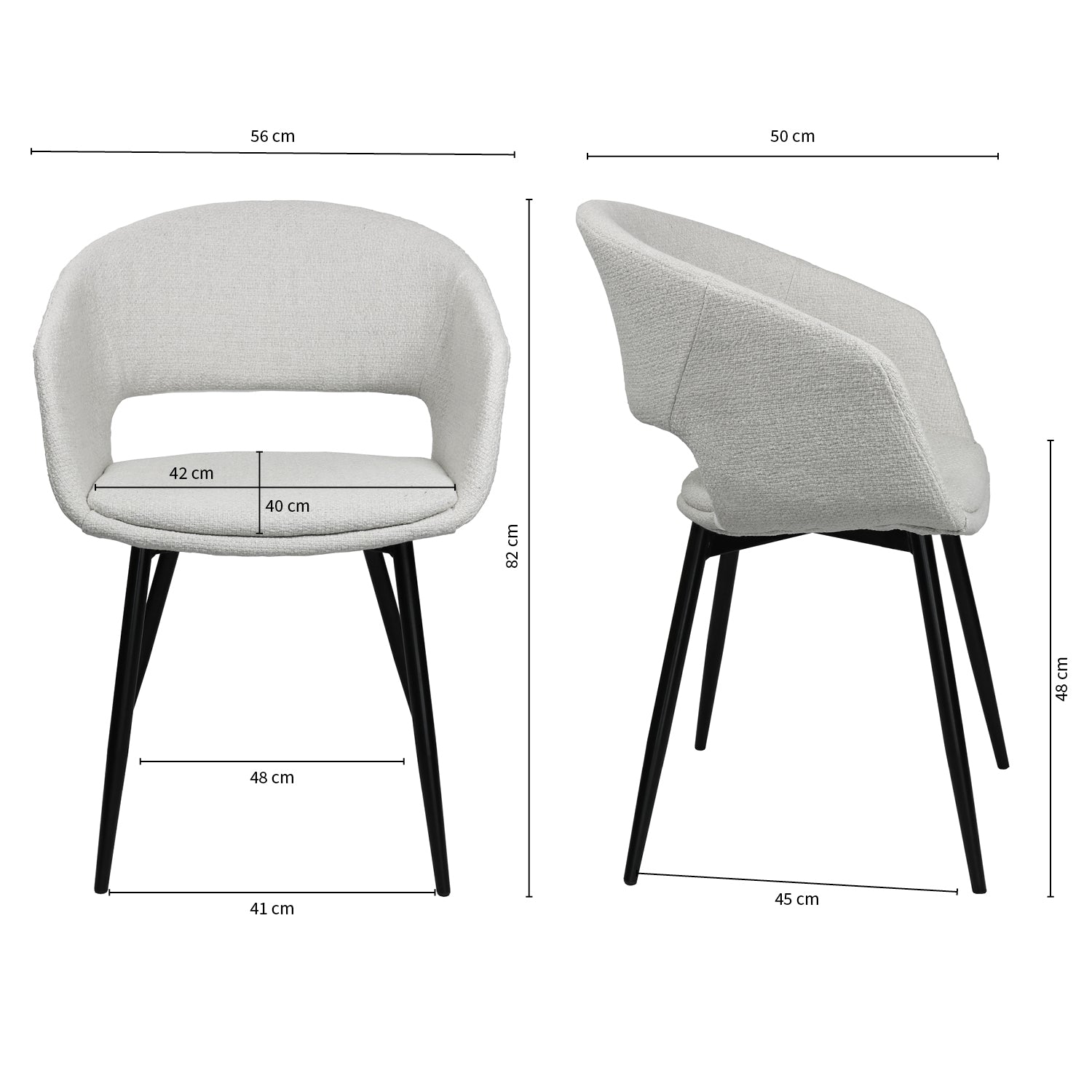 De hoogte van de zitting, gemeten vanaf de vloer. De ideale zithoogte bevindt zich tussen de 40 en 46 cm. Je zit het lekkerst met een ruimte van ongeveer 20 cm, tussen de stoelzitting en de onderkant van het tafelblad.