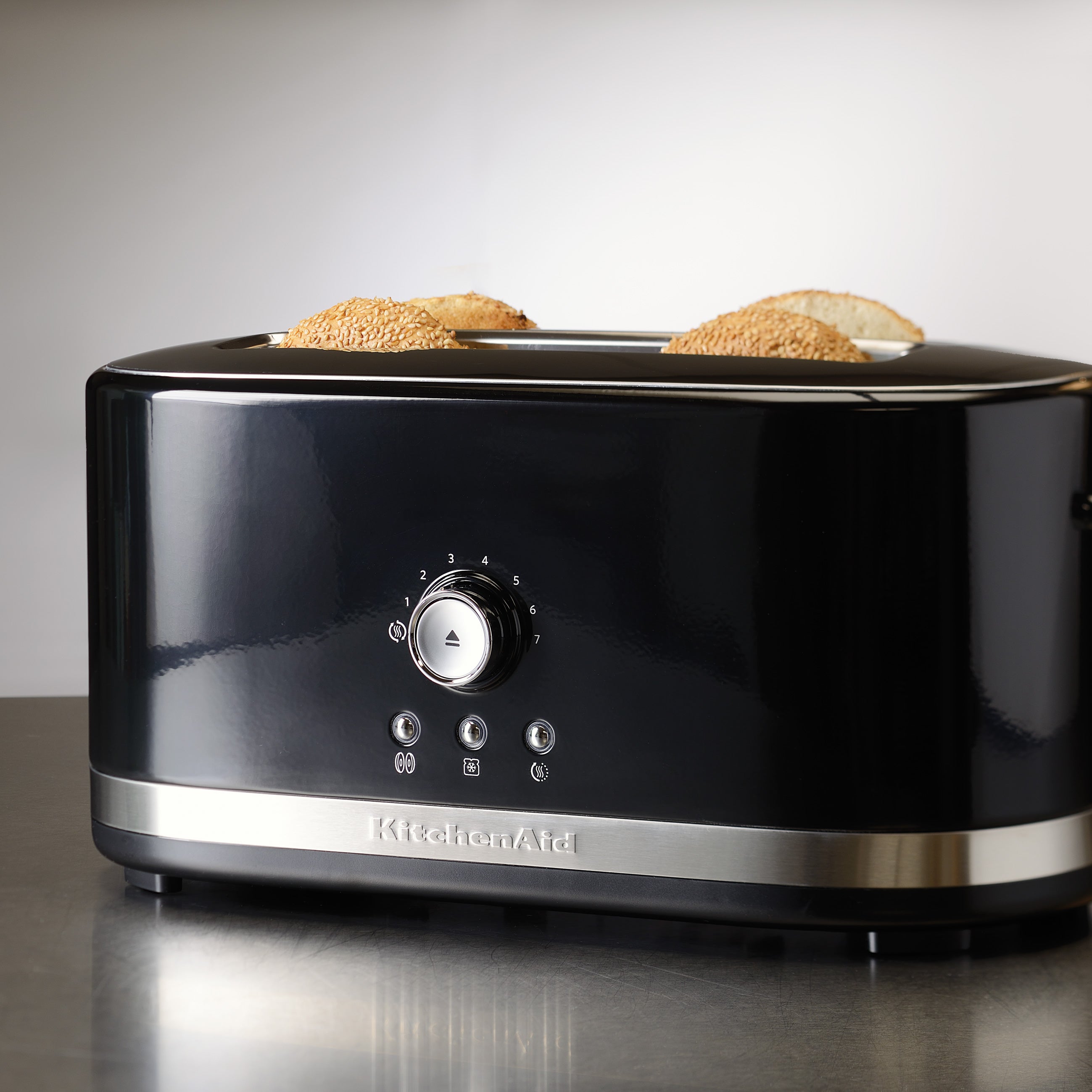 Opwarm-, ontdooi-, en pauzefunctie Even kort je broodje opwarmen of ontdooien doe je in je KitchenAid broodrooster. Het brood wordt automatisch gecentreerd en het brood haal je er eenvoudig uit door de extra hoge lift. Met de hoge lift controleer je ook tussentijds of het bruinen goed gaat.