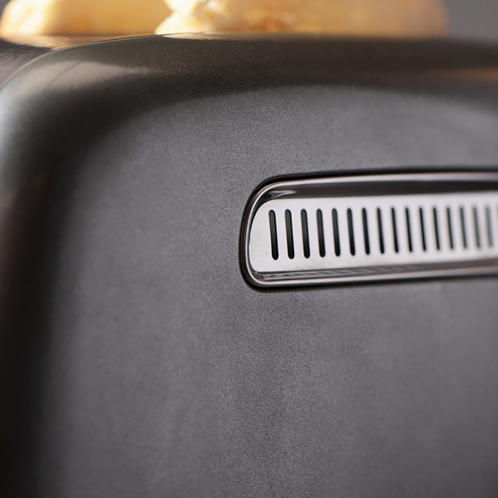 Met de KitchenAid broodrooster maak je binnen no time een ontbijtje of lunch klaar. De broodrooster heeft een speciale bagelfunctie. De bagel wordt aan de binnenkant zacht verwarmd en de buitenkant geroosterd, ideaal! De stopknop is handig om het roosteren te stoppen als je broodje bruin genoeg is. In de extra brede sleuven passen de meeste sneetje brood gemakkelijk. De binnenkant van de broodrooster is heel ruim, dit zorgt voor gelijkmatige bruining. De constructie is helemaal van metaal en met een verchroomde temperatuurknop. Dat maakt dat deze broodrooster stevig is en lang mee gaat!