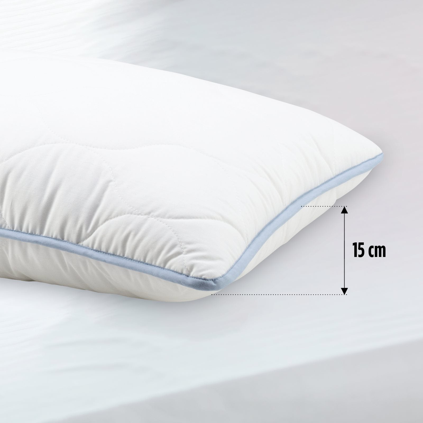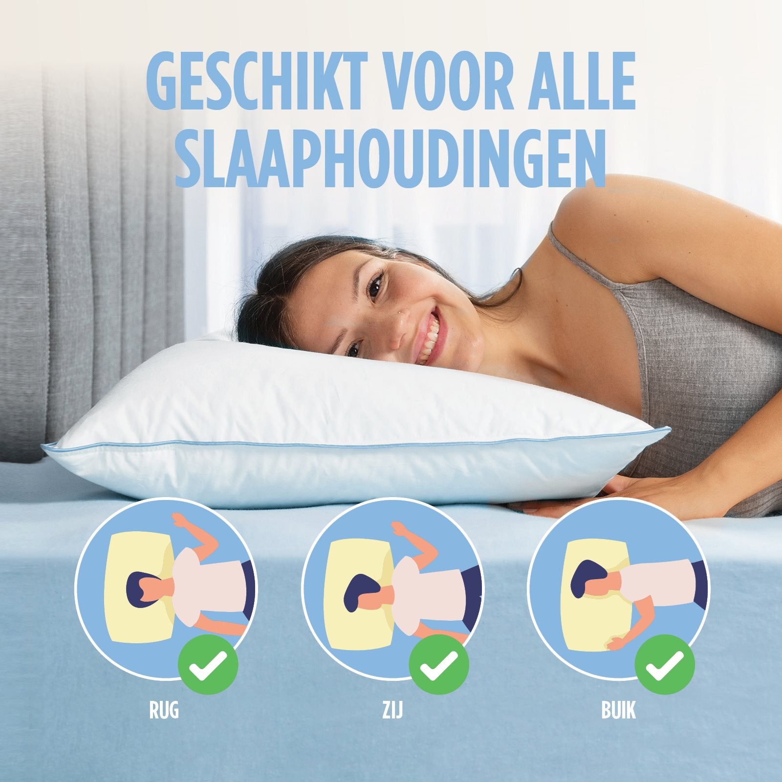 - Klassiek kussen voor alle slaaphoudingen (rugslapers, buikslapers en zijslapers)