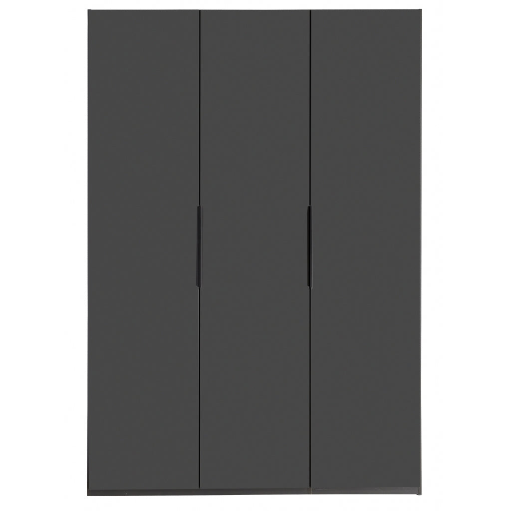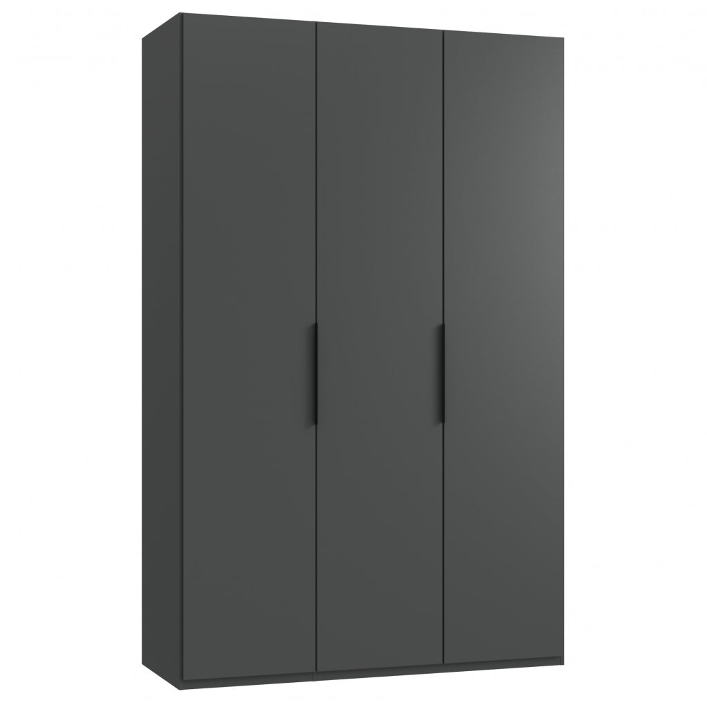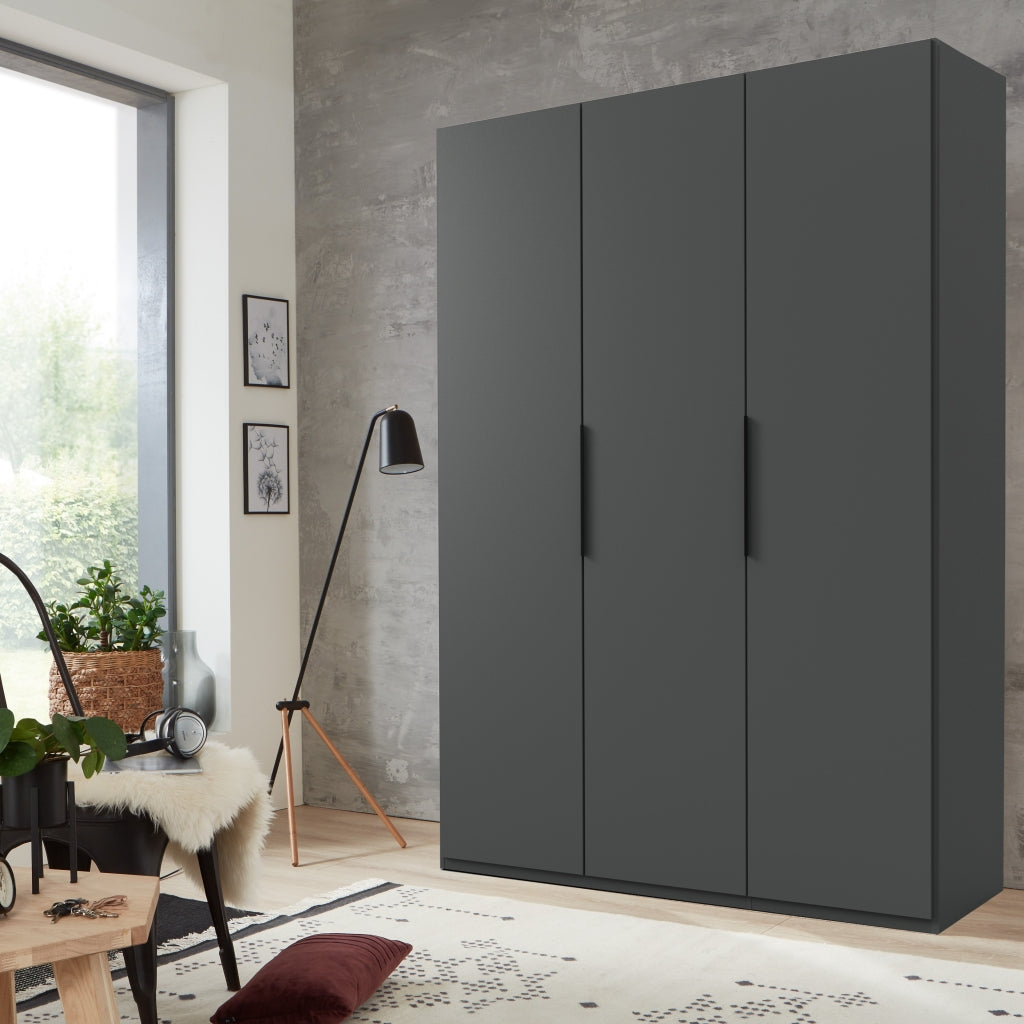 De Kledingkast Oss is een essentieel meubelstuk voor je slaap- of kleedkamer. In plaats van rommelige kleding en linnengoed, biedt deze stijlvolle opberger voldoende ruimte om alles netjes op te bergen. Met een hoogte van 236 cm en 3 strakke draaideuren, is deze donkergrijze Oss kast niet alleen functioneel, maar ook een moderne en luxe toevoeging aan je interieur. Bovendien past het perfect bij verschillende woonstijlen. Indeling: De draaideurkast heeft aan de linkerkant een smal enkeldeurs gedeelte en aan de rechterkant een breed dubbeldeurs gedeelte. Beide vakken zijn voorzien van 2 legplanken en 1 roede. Goed om te weten: De Kledingkast Oss heeft een breedte van 150 cm, een diepte van 58 cm en een hoogte van 236 cm. De kast is volledig uitgevoerd in grafietgrijs decor en wordt geleverd inclusief 4 planken en 2 roedes. Oss wordt als bouwpakket geleverd en dient staand te worden opgebouwd, wat handig is als je beperkte ruimte hebt. Houd er rekening mee dat er een tussenruimte van 4 cm nodig is voor de montage, dus de minimale plafondhoogte moet 240 cm zijn.| Afmetingen | |