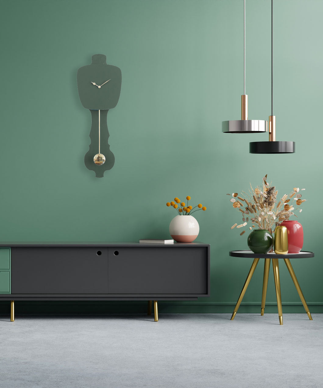 KLOQ Wandklok met slinger in Mist Groen & Glimmend Goud (SE) - maat L