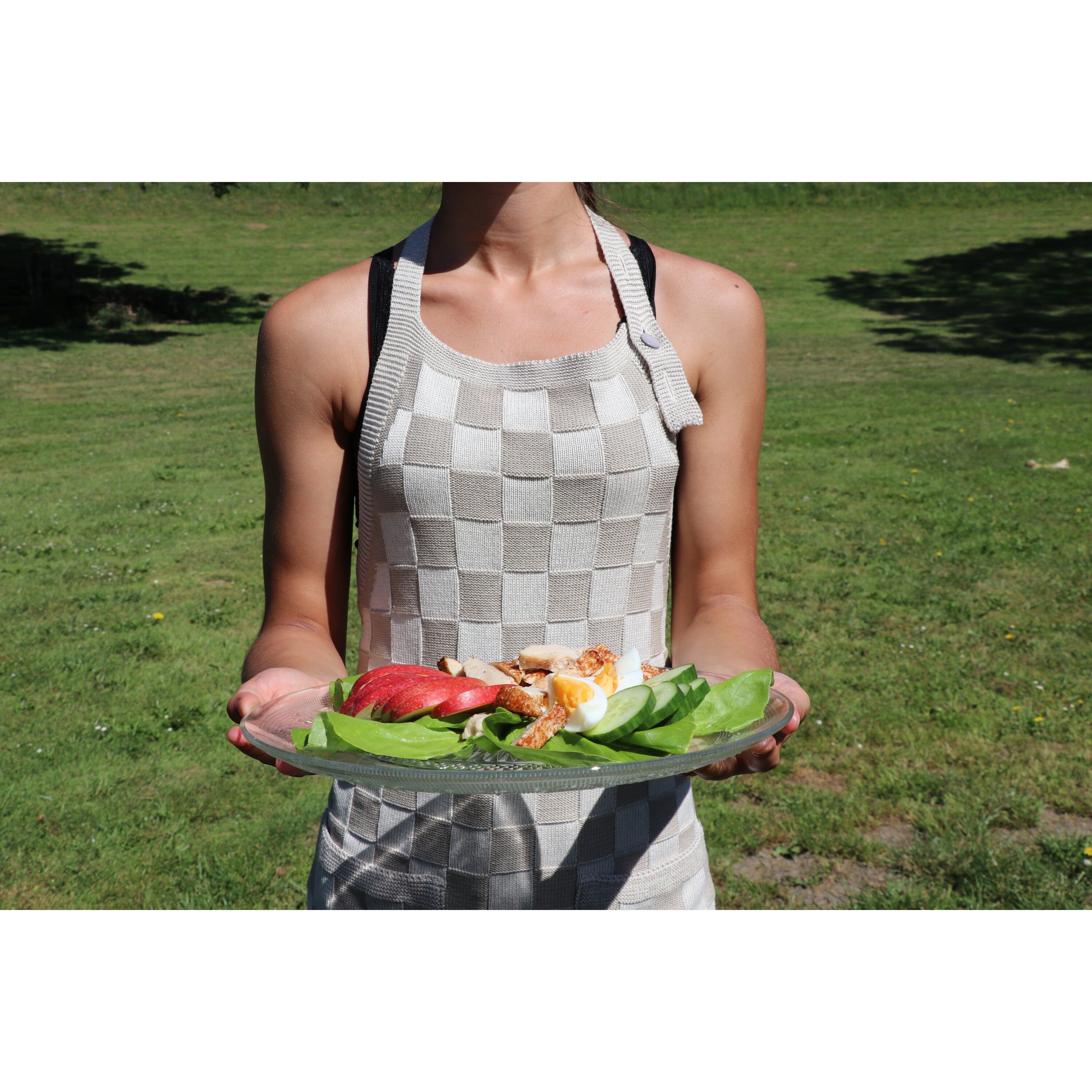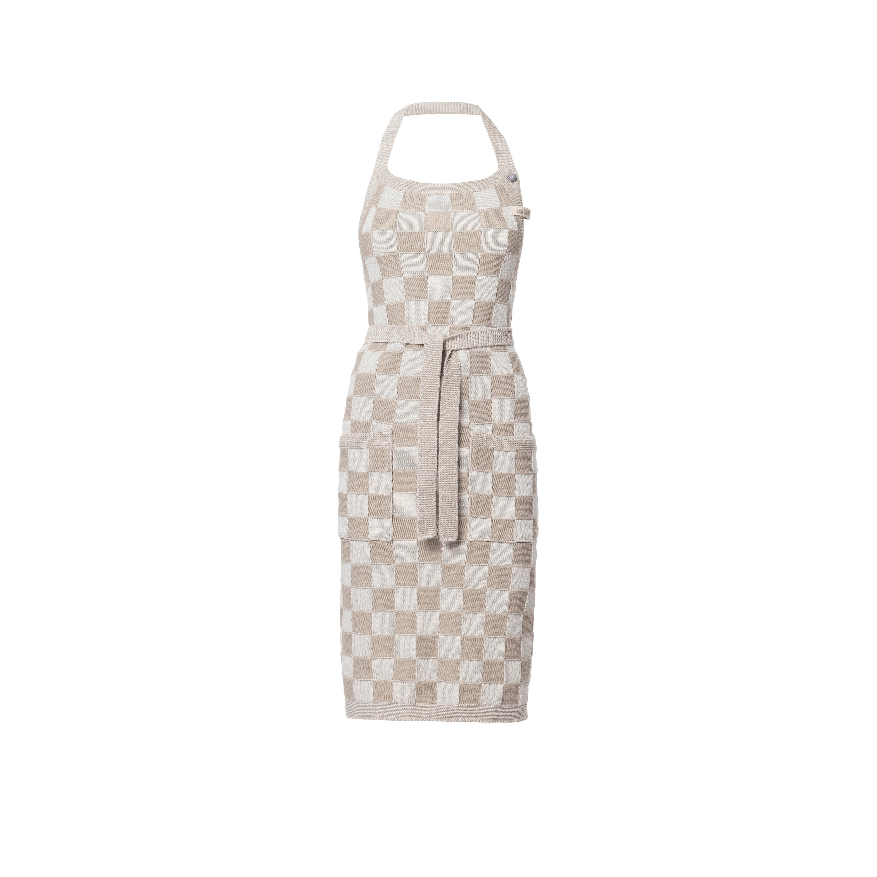 Knit Factory Gebreide Keukenschort Block - Ecru|Linnen