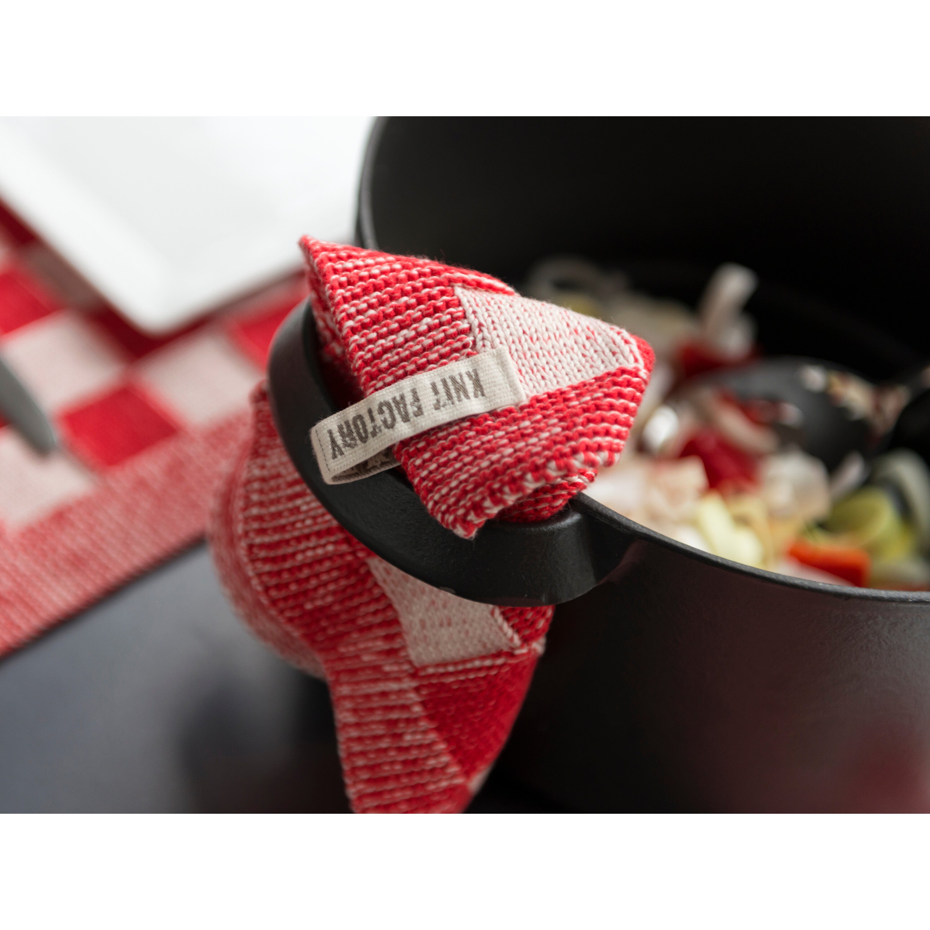 Knit Factory Gebreide Pannenlap Block - Ecru|Antraciet - 23x23 cm