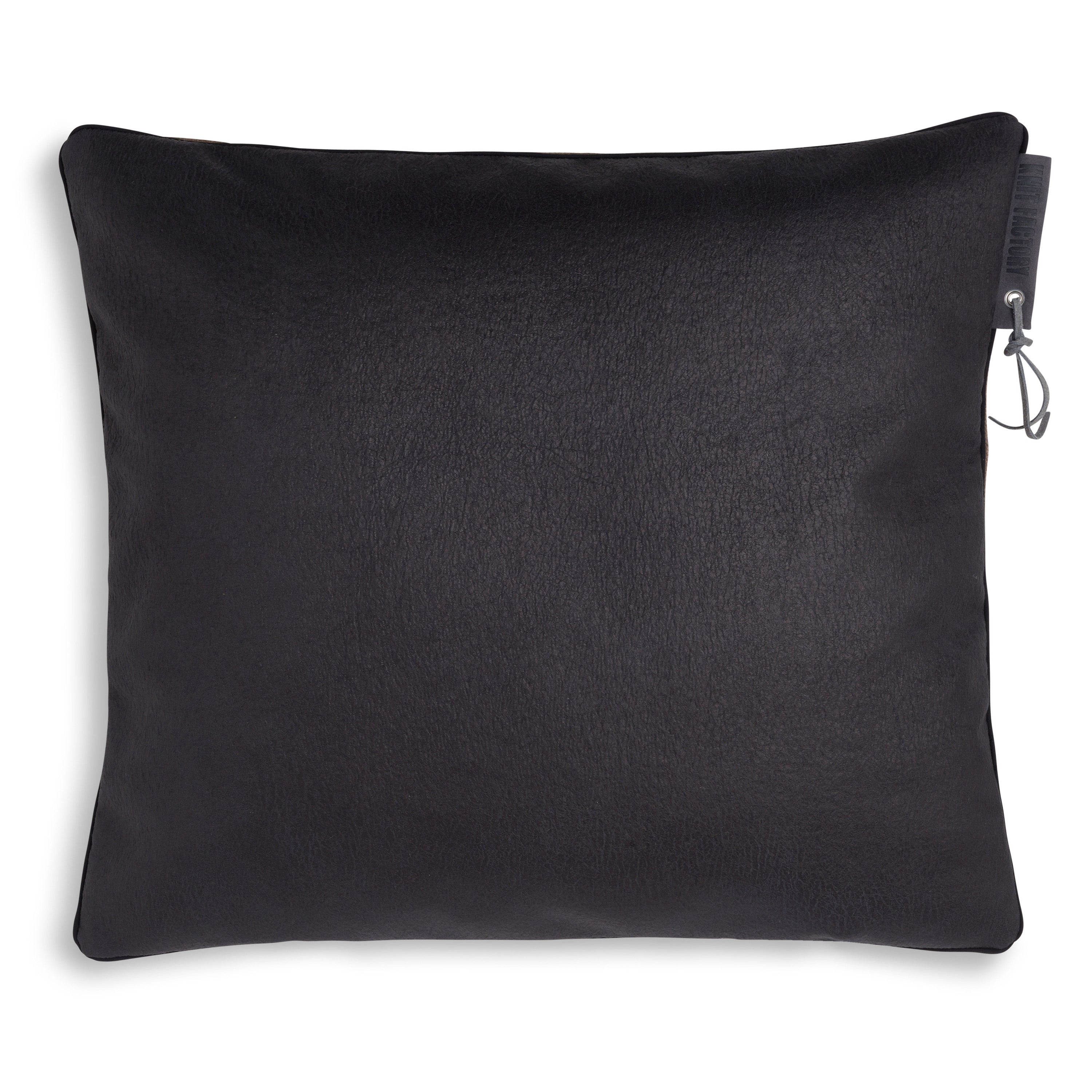- De achterzijde van James bestaat uit imitatieleer, wat het kussen een robuuste look geeft.