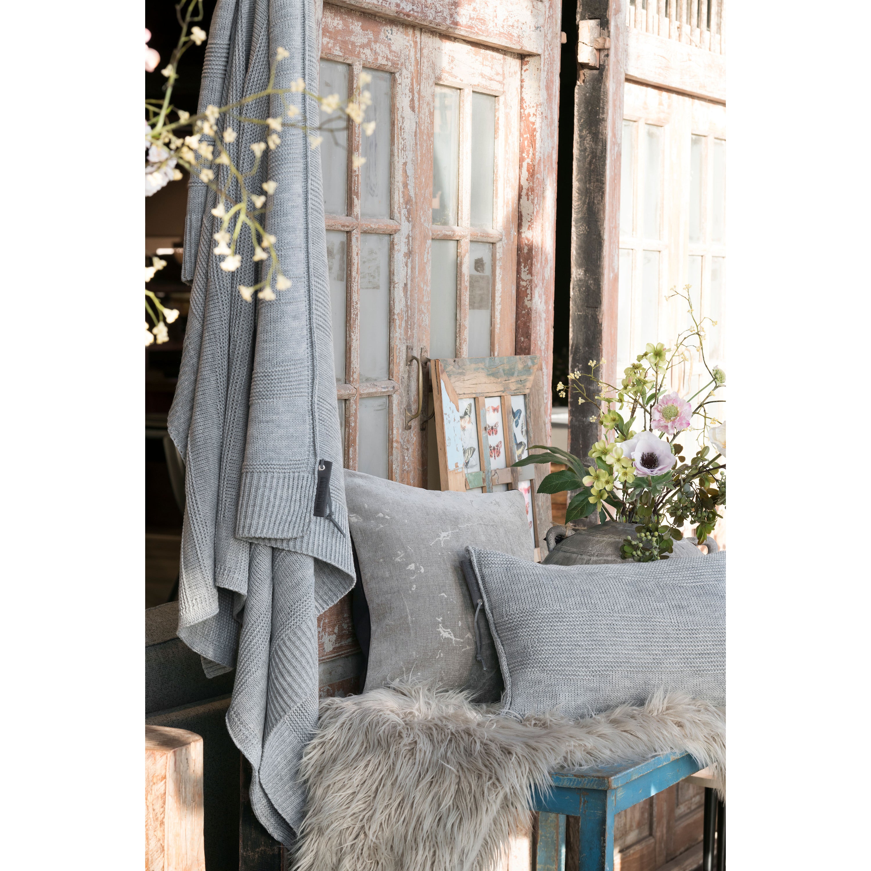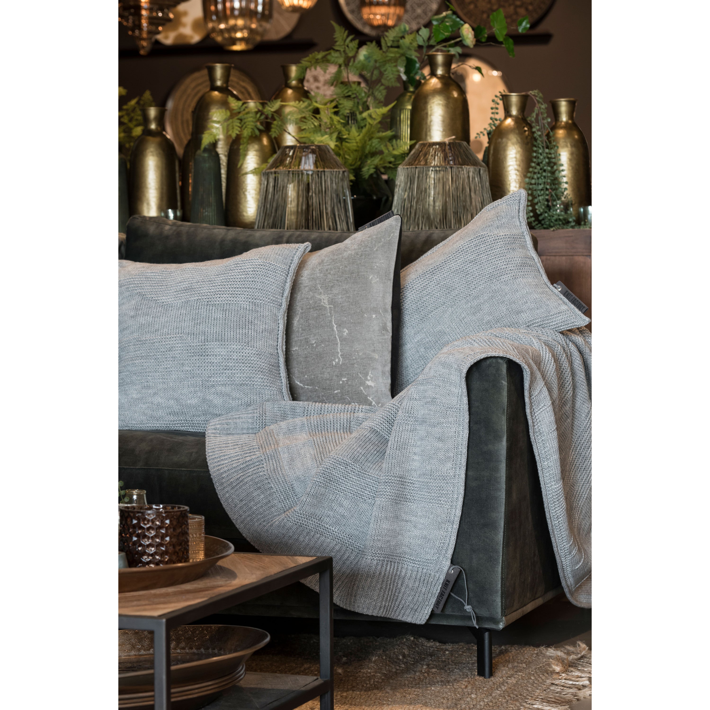 Knit Factory James Sierkussen - Licht Grijs - 50x50 cm