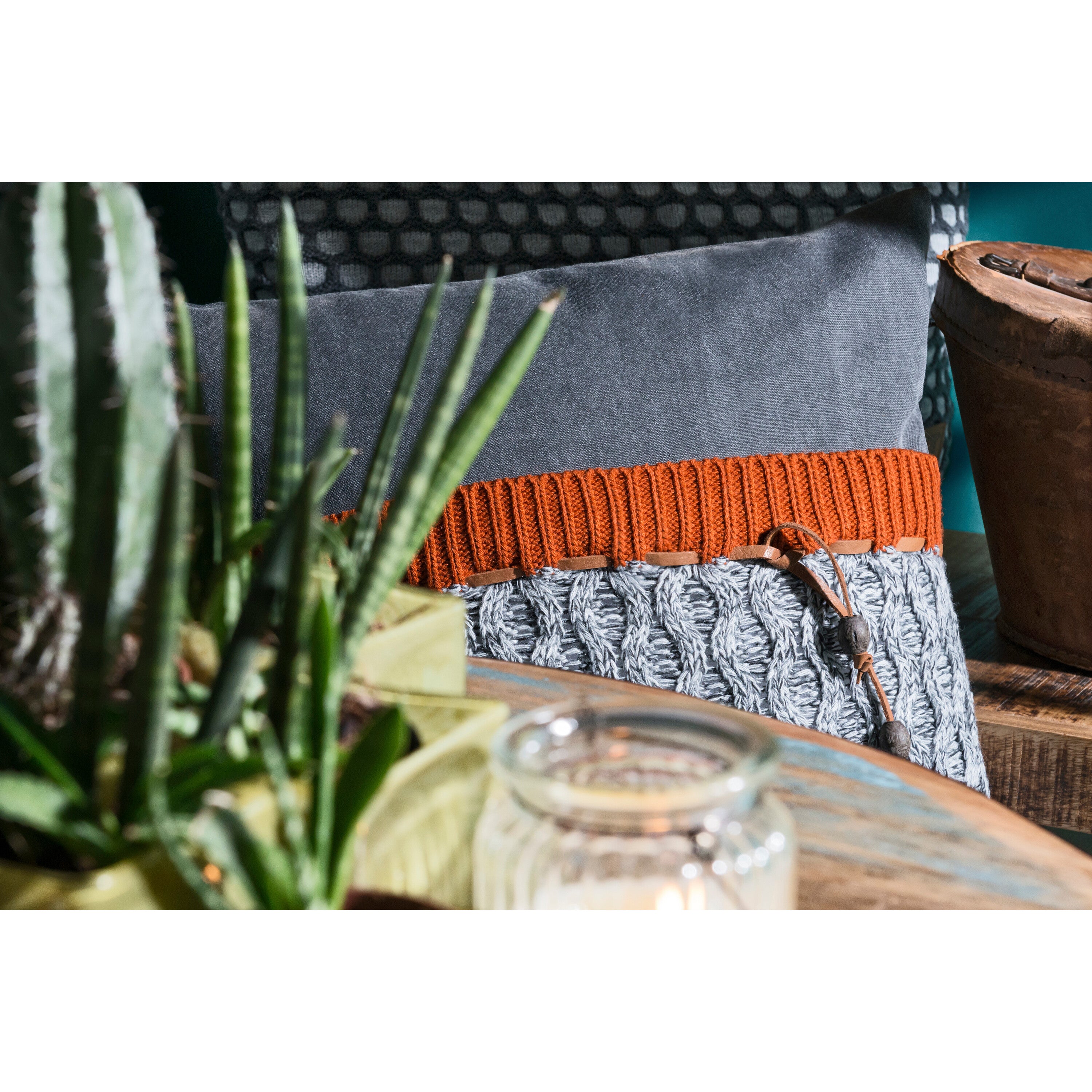 - Het Knit Factory Joep Kussen bewijst dat de combinatie van breiwerk met stevig katoen een opvallende en zeer stoere uitstraling geeft!