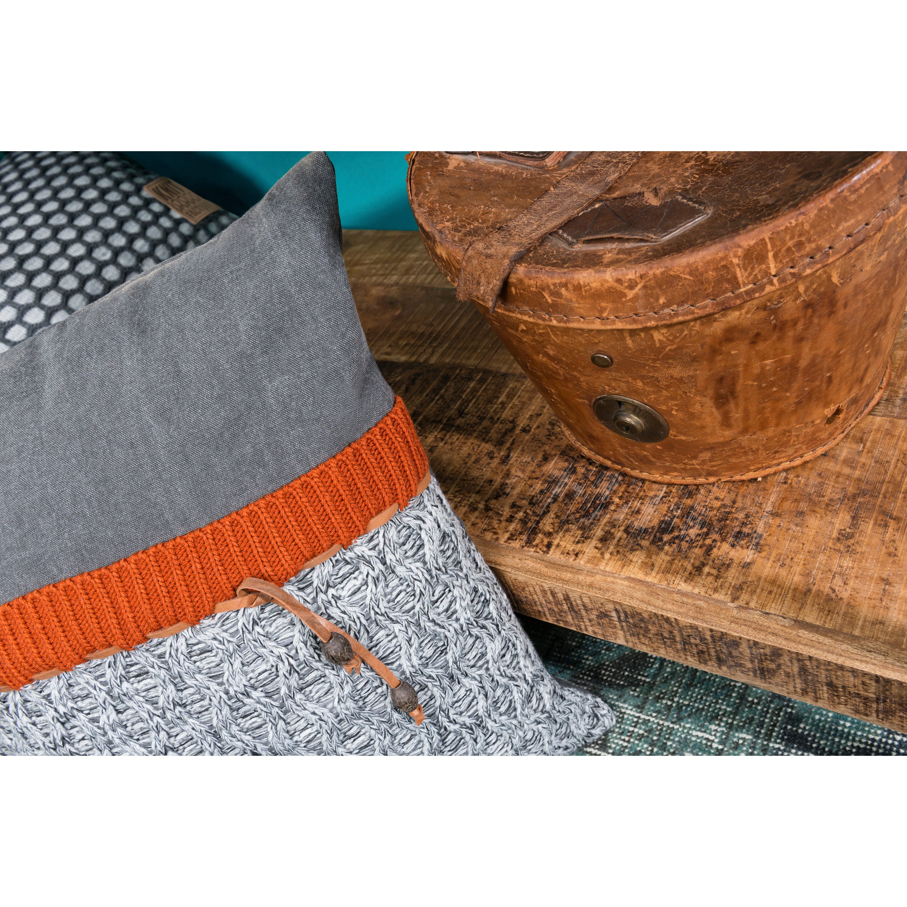 - Dit gebreide sierkussen is verkrijgbaar in meerdere kleuren.