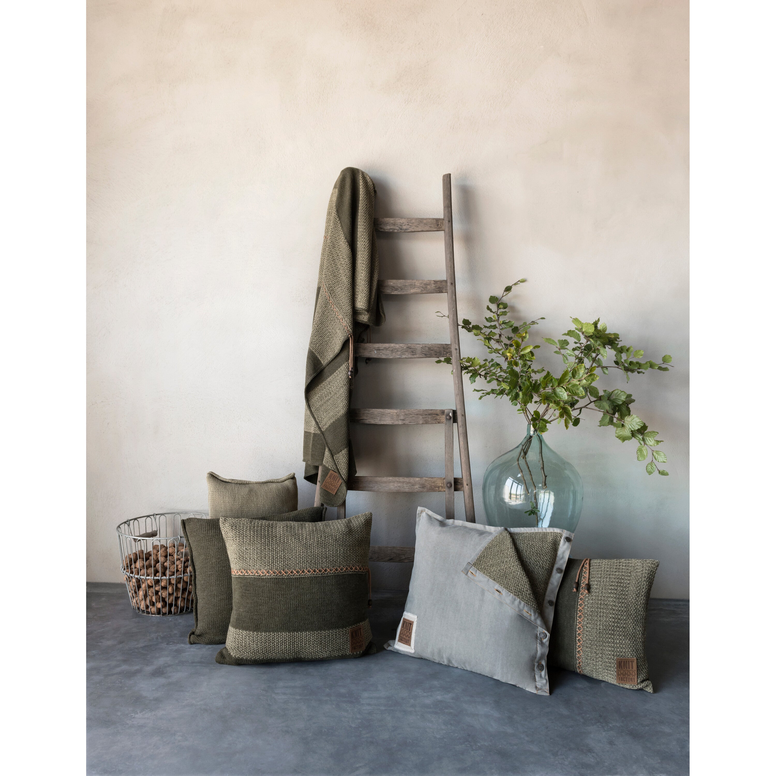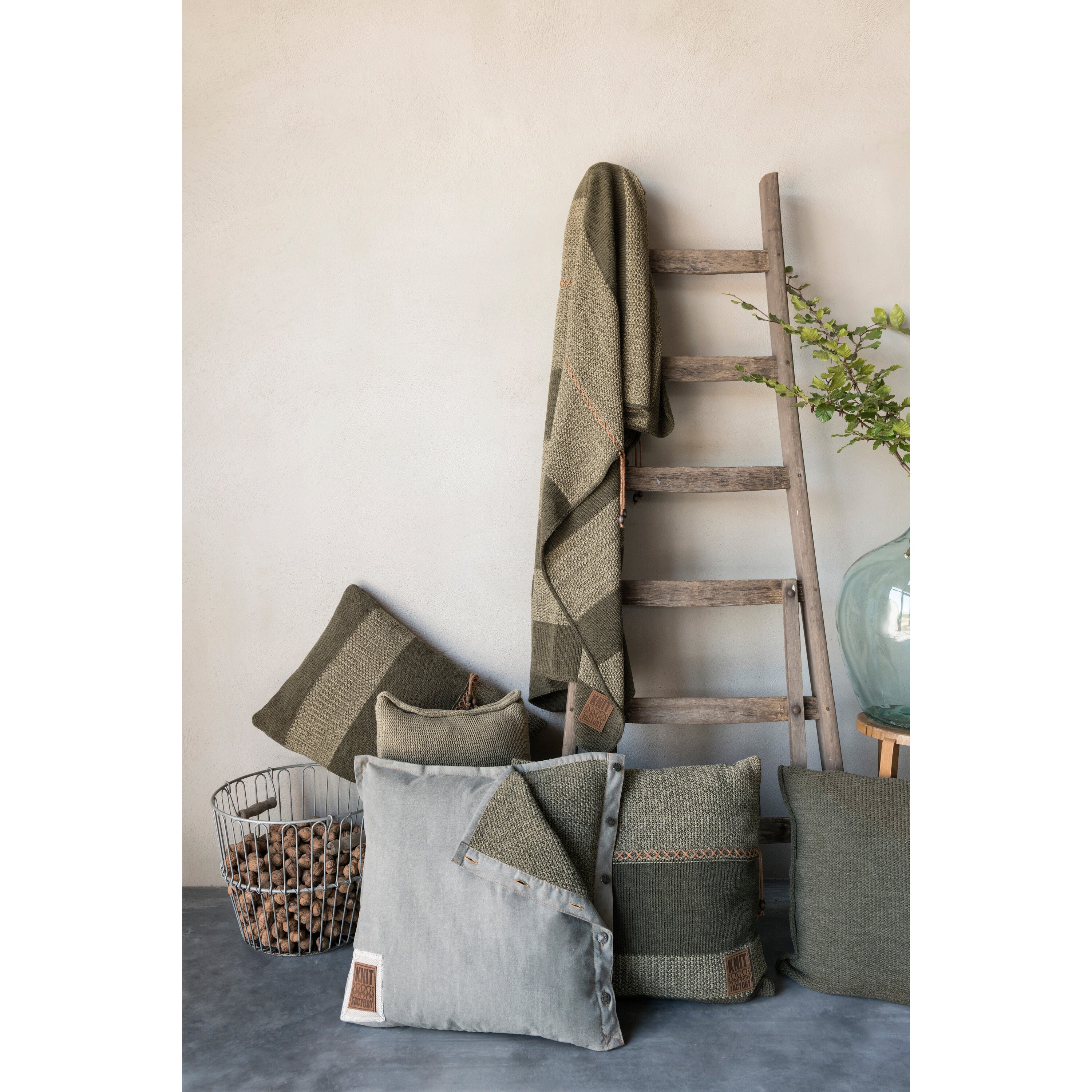 Knit Factory Roxx Sierkussen - Groen|Olive - 60x40 cm