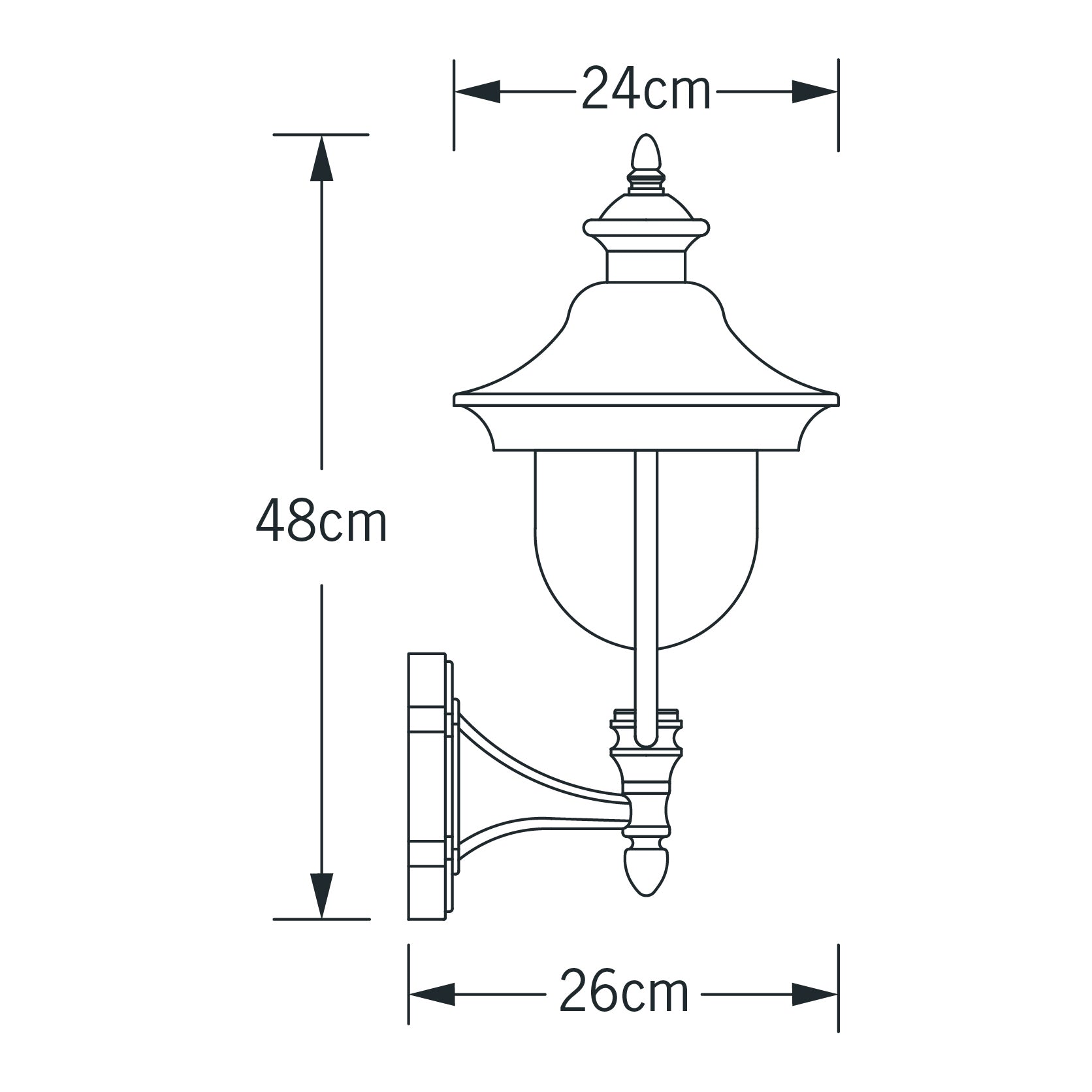 - Opwaartse wandlamp van H 43 x B 24 x D 21 cm