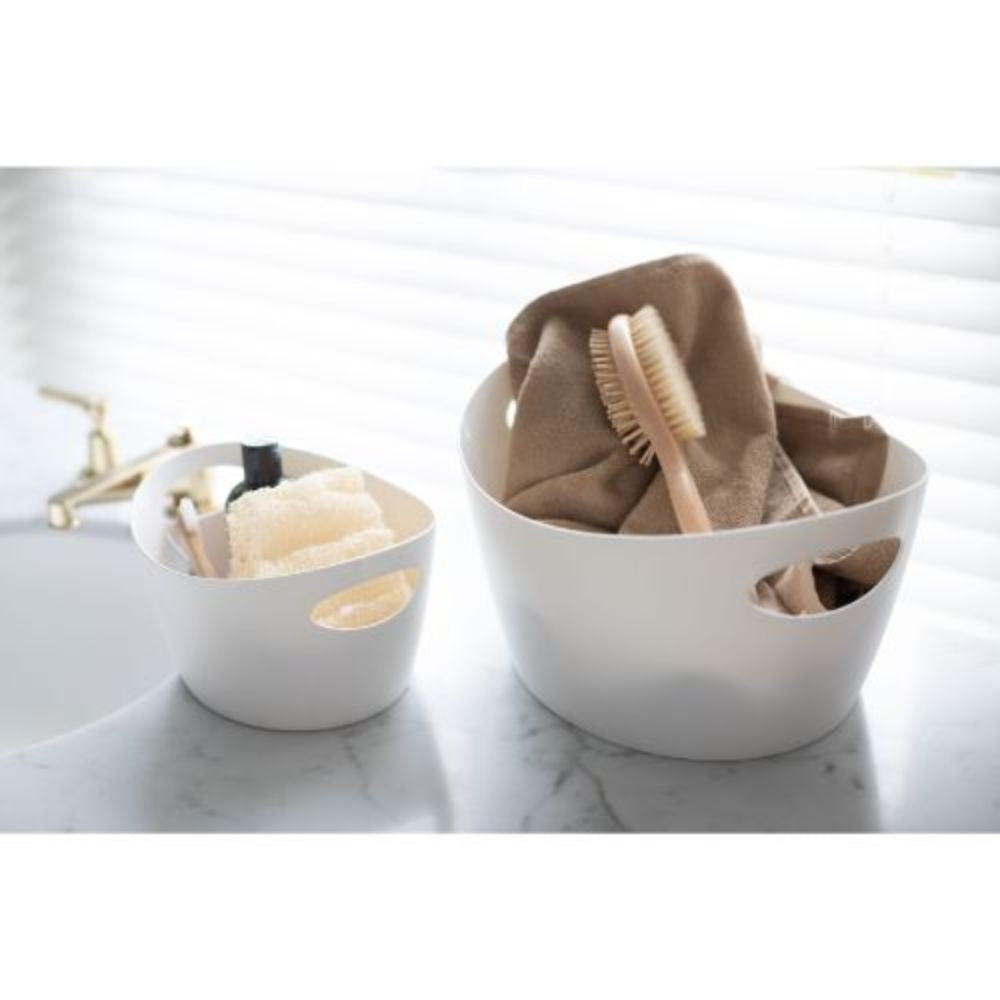 Badkamermand M, Organic, Wit - Koziol | Bottichelli De was doen is niet het favoriete huishoudelijke klusje van de meeste mensen, maar toch moet het gebeuren. Bonte was, spijkergoed, witte was, alles moet gedaan worden en verzameld. Met deze badkamermand zorg je er voor dat dit klusje een stuk leuker wordt. De mand is uiteraard te gebruiken voor het verzamelen van jouw wasgoed, maar ook om badkamerartikelen gemakkelijk te verplaatsen. Denk bijvoorbeeld aan wasmiddelen, het beddengoed of andere grote wasjes. De mand is gemakkelijk stapelbaar en ook beschikbaar in de kleuren: bruin en grijs. Pluspunten:
