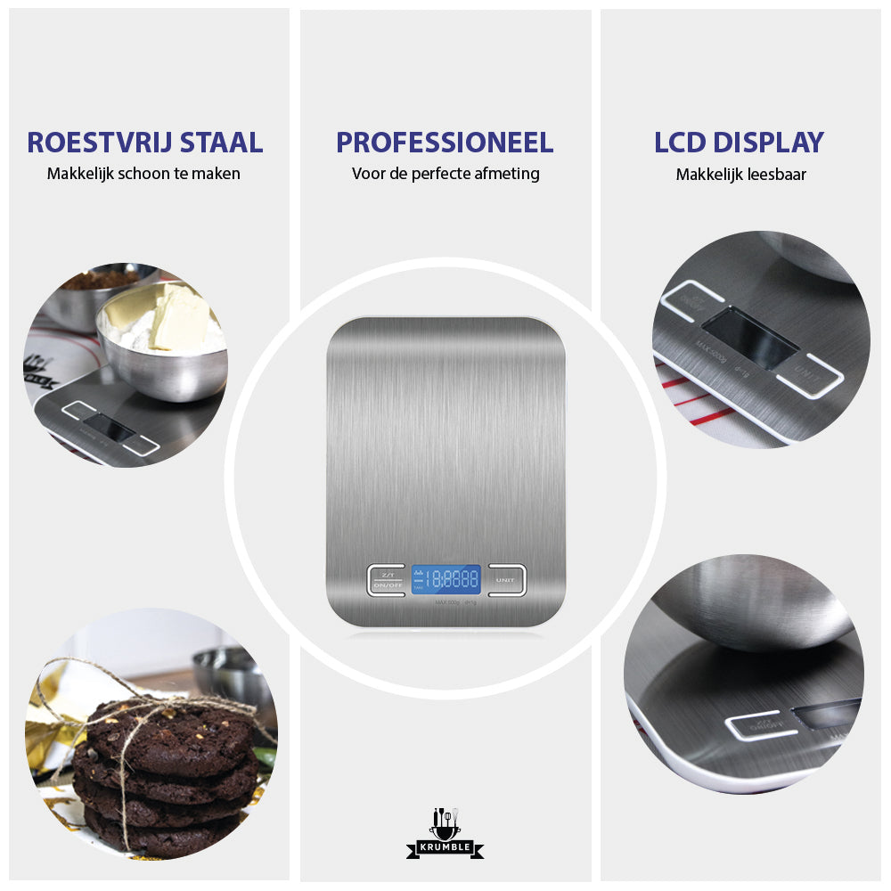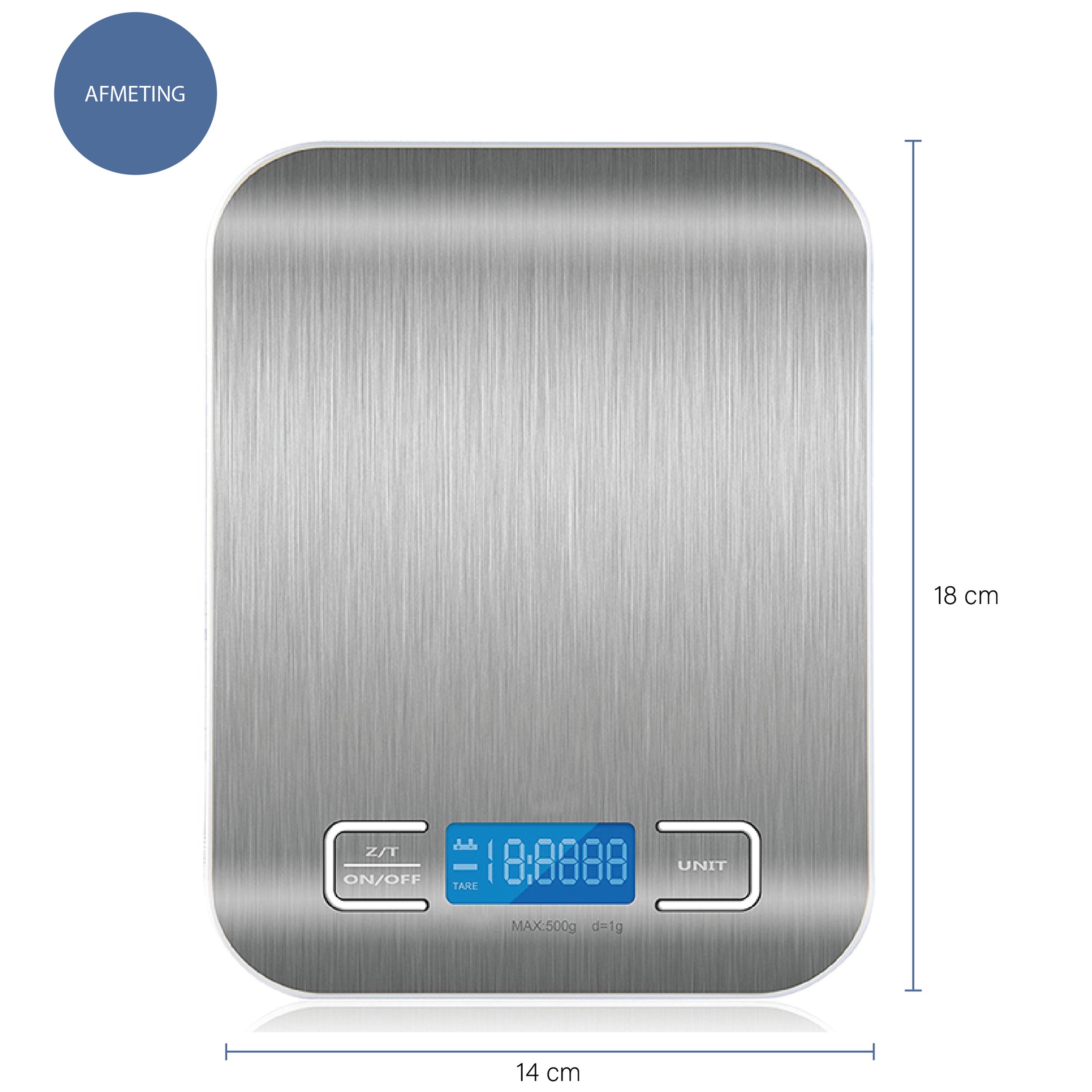 - Met deze digitale weegschaal meet je op 1 gram nauwkeurig tot maximaal 5 kilogram.