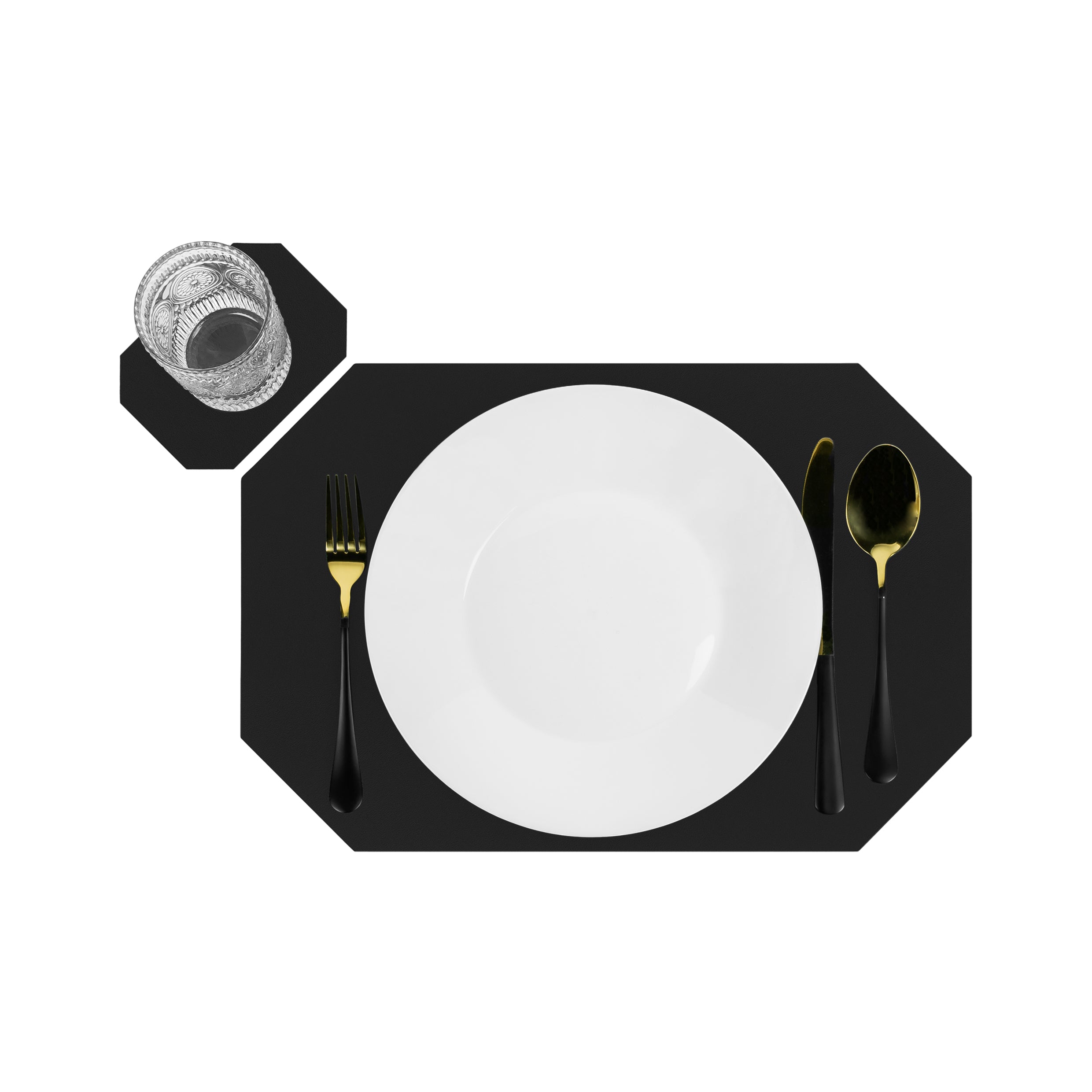 - Bovendien worden ze geleverd in een set met zowel een placemat als een onderzetter voor je glas.