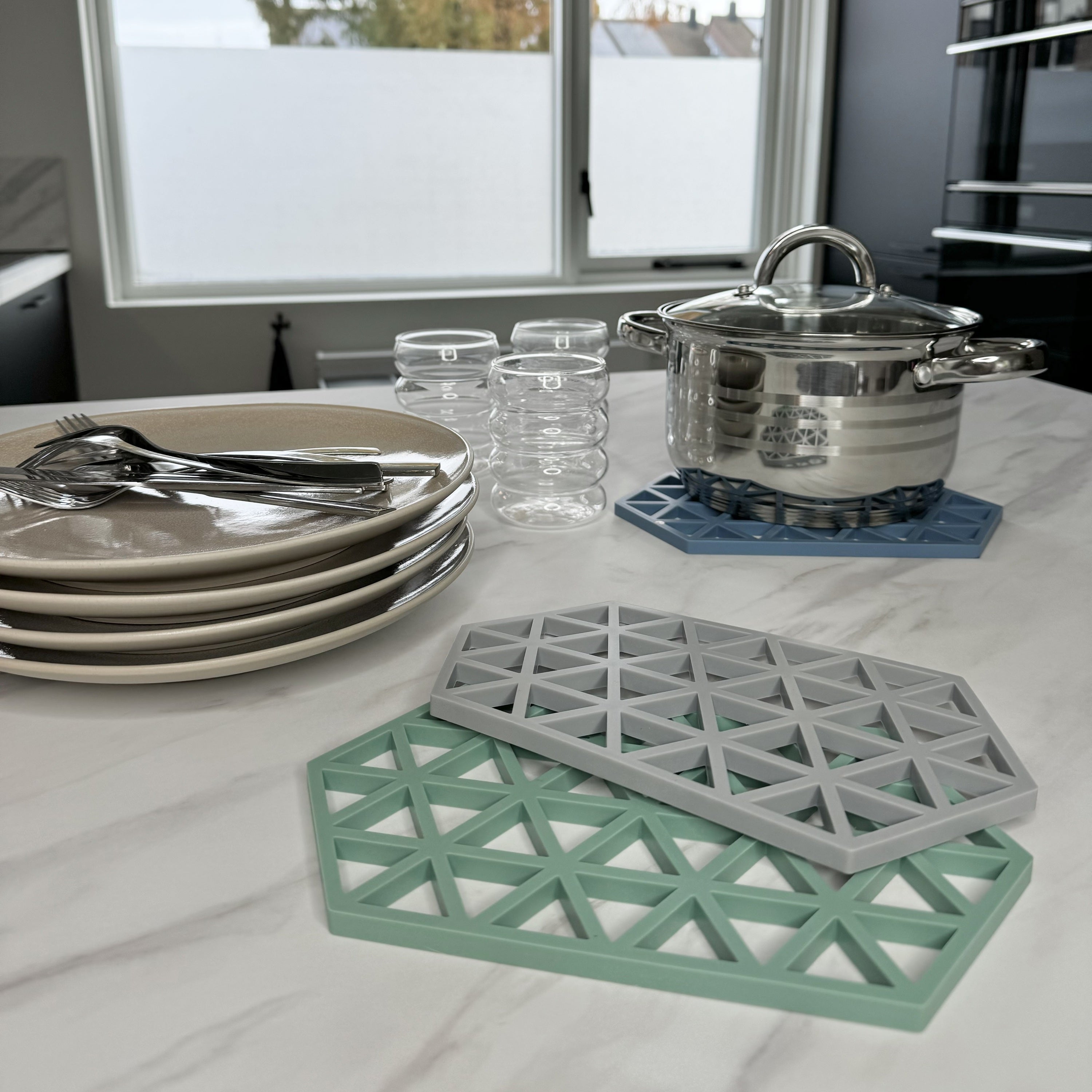 Krumble Siliconen pannenonderzetter Hexagon lang - Blauw - Set van 4