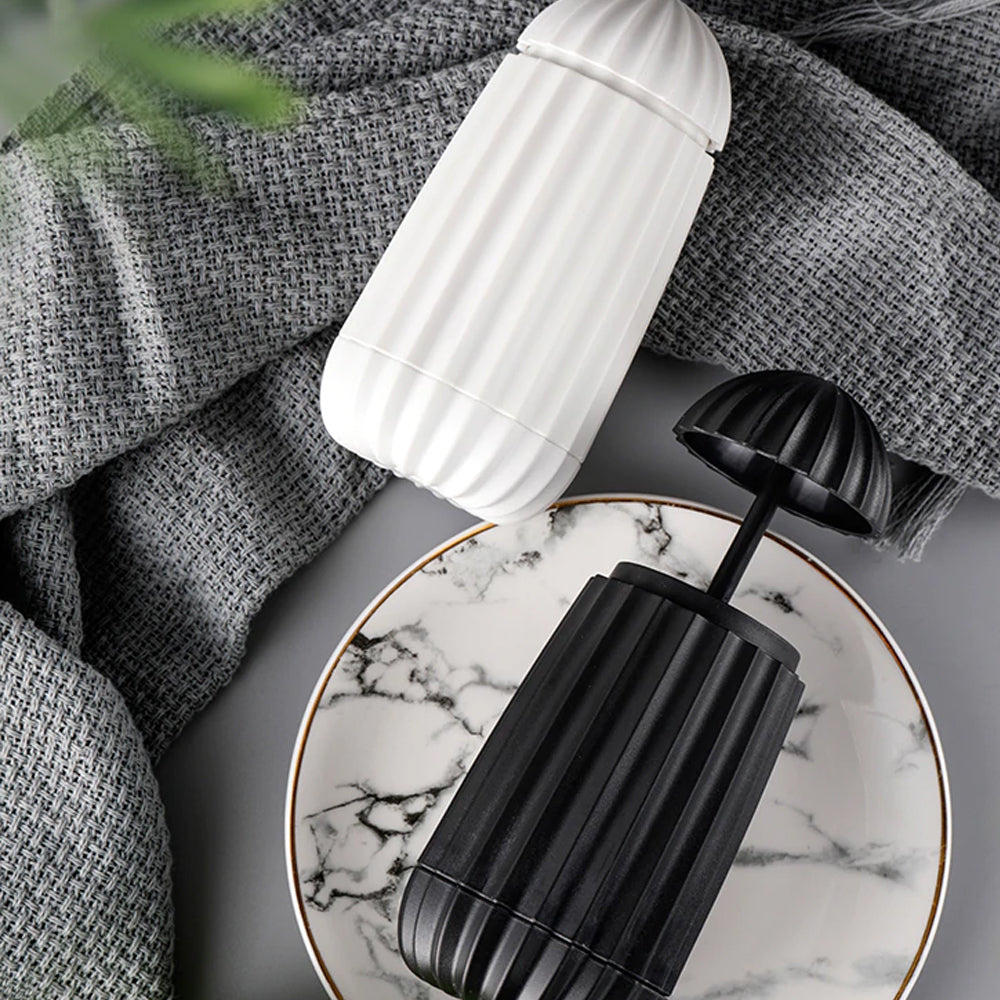 - Eenvoudig drukmechanisme waardoor het dekseltje uit de houder omhoog komt