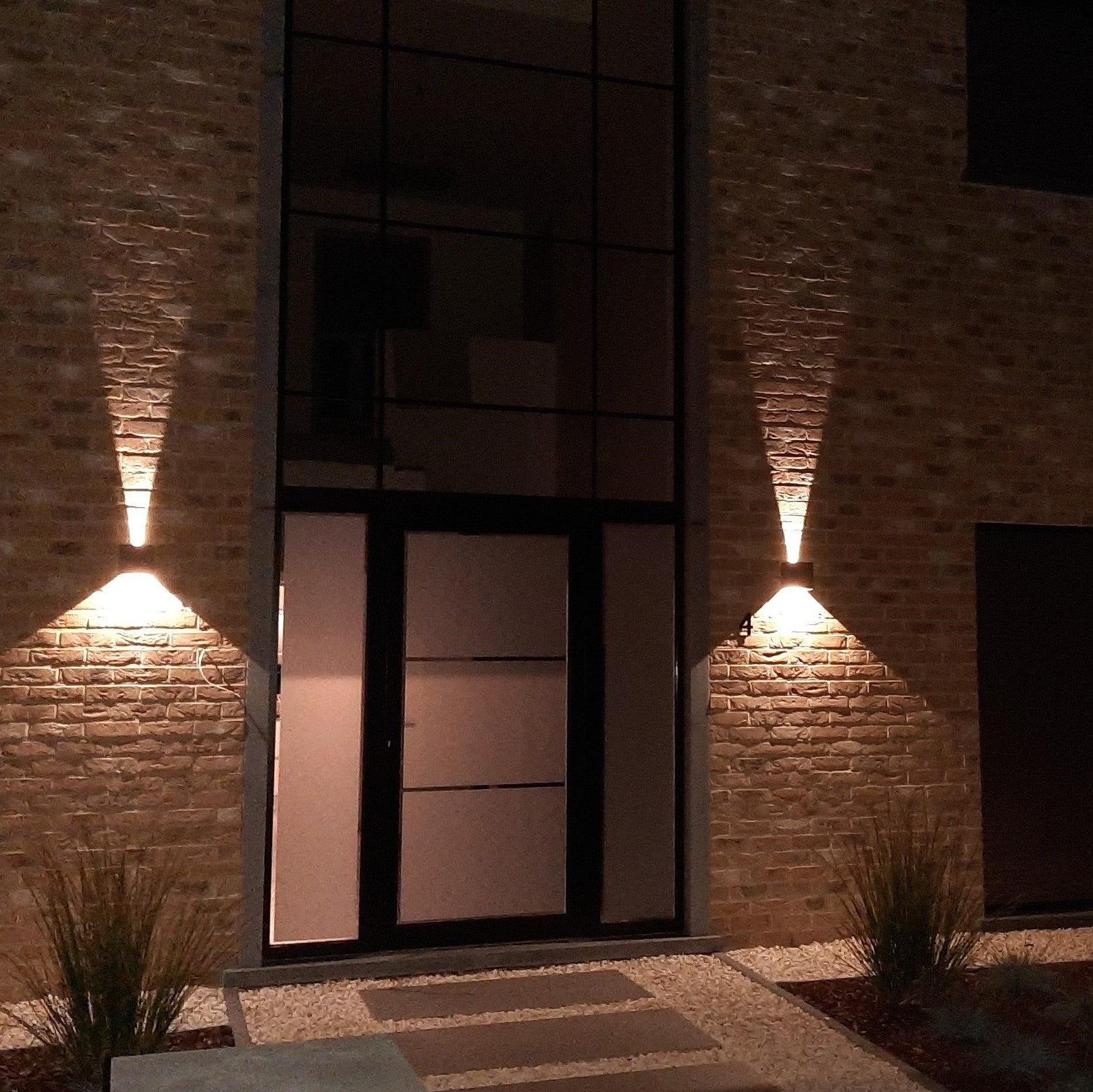 De Dean Muurlamp Zwart is de ideale keuze voor wie op zoek is naar moderne en veelzijdige buitenverlichting. Met zijn strakke mat zwarte afwerking en hoogwaardig aluminium constructie biedt deze muurlamp een stijlvolle toevoeging aan diverse buitenruimtes. Of het nu langs de muur, aan de schutting of bij een veranda is, de Dean Muurlamp past perfect in verschillende buitenomgevingen.Energie-efficiëntie: De Dean wandlamp is ontworpen met 1 G9 fitting die naar boven en beneden schijnt. De muurlamp is geschikt voor een duurzame LED lichtbron oplossing.IP-classificatie: De buitenlamp heeft een IP-waarde van IP54, Hierdoor is de lamp perfect geschikt voor buiten gebruik. Het is een duurzame keuze voor buiten gebruik.Inclusief lichtbron: De Dean wordt geleverd inclusief een LED lichtbron, hierdoor kan je direct genieten van je verlichting. De buitenlamp heeft een vervangbare lichtbron hierdoor kan je altijd een gewenste lichtbron in de lamp stoppen. Deze buitenlamp gaat verder dan esthetiek, met zijn unieke ontwerp biedt de Dean Muurlamp flexibiliteit in verlichting. De lamp schijnt zowel naar boven als naar beneden en biedt de mogelijkheid om het licht alleen naar boven of alleen naar beneden te richten. Het is uitgerust met schermklepjes aan de boven- en onderkant, waardoor je volledige controle hebt over de lichtverspreiding. Of je nu kiest voor een volledige open, volledig gesloten of gedeeltelijk open configuratie, met de Dean Muurlamp creëer je moeiteloos het perfecte lichtveld voor elke situatie. Transformeer je buitenruimte met deze veelzijdige en eigentijdse muurlamp.