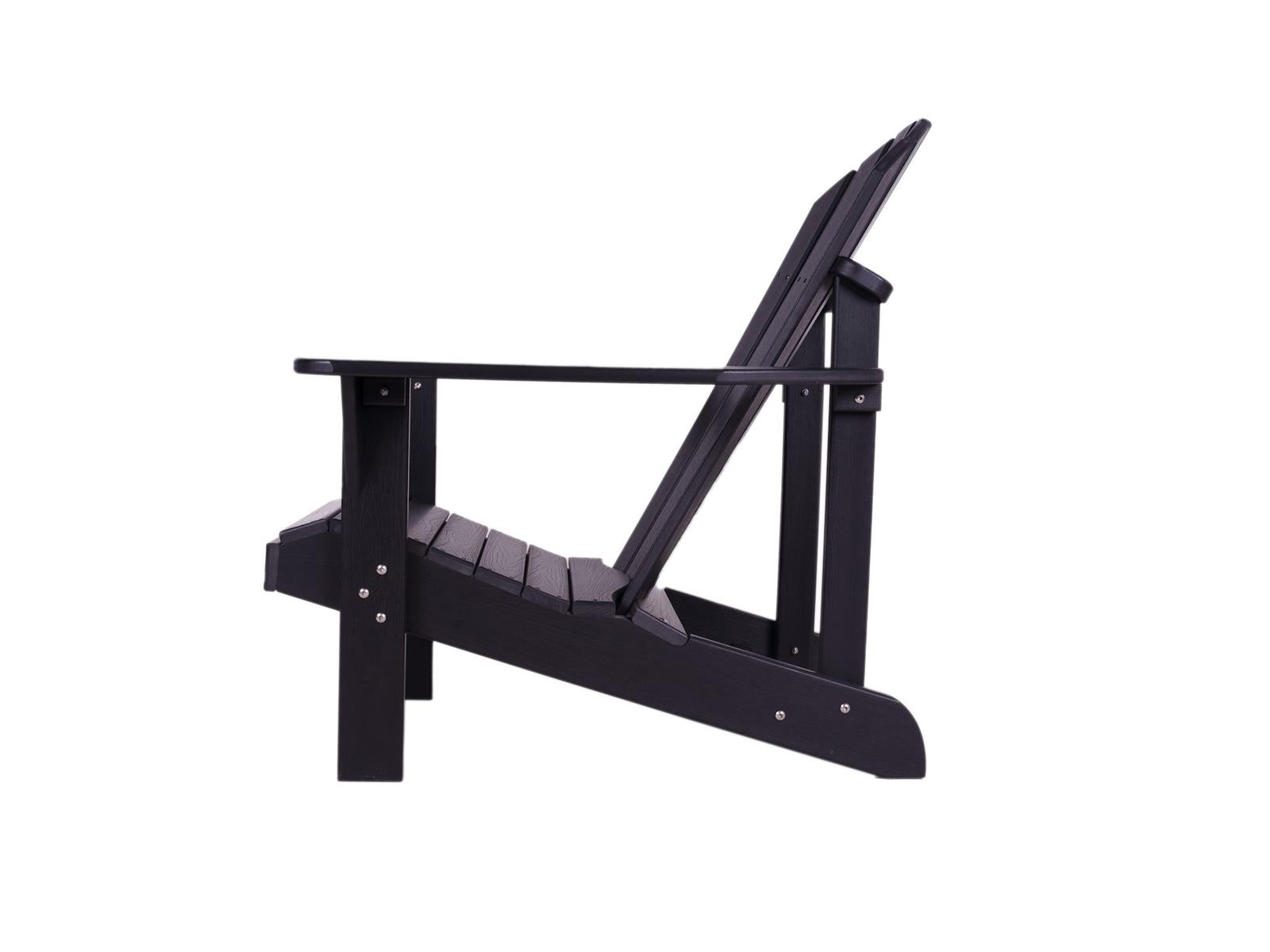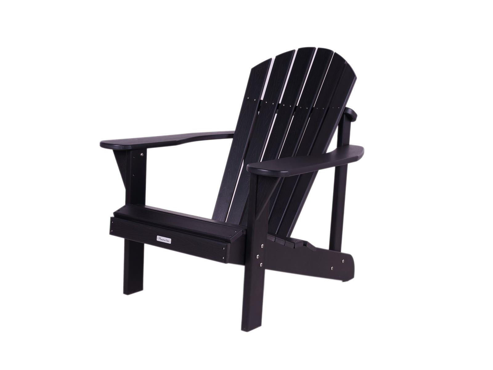 Inmiddels zie je de stoel overal terugkomen; van het strand op Ibiza tot op de veranda van een houten blokhut in Canada. Na lang testen is het ons gelukt om de zo kenmerkende ergonomische rondingen en brede armleuningen uit hout te reproduceren in onderhoudsarm zwart kunststof. Hiermee durven we gerust te stellen dat onze tuinstoel Montreal de meest originele en comfortabele kunststof adirondackchair van dit moment is! Waarom worden wij zo blij van onze zwarte kunststof Adirondack stoelen? - Ergonomisch ronde rugleuning en zitvlak - Brede armleuningen -sdfOnderhoudsarm gecertificeerd gerecycledsdfHDPE met RVS schroeven - Bijpassend voetenbankje, kussen en sidetable leverbaar - Prachtige houtnerf in het kunststof voor een echte houtlook Tip van ons: Bescherm je stoel door hem af te dekken met onze speciaal gemaakte beschermhoes. Naast bescherming blijft je Adirondack stoel vrij van blad, vogelpoep, takken en groene aanslag. Daarnaast helpt het om de stoel af en toe schoon te maken met kunststof reiniger.