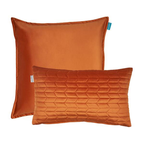 Kussen fluweel uni oranje 50x50 cm en 30x50 cm set van 2