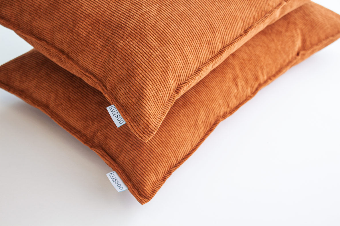 Kussoo Kussen Ribfluweel Corduroy Cognac 40x60cm Set van 2 sierkussens