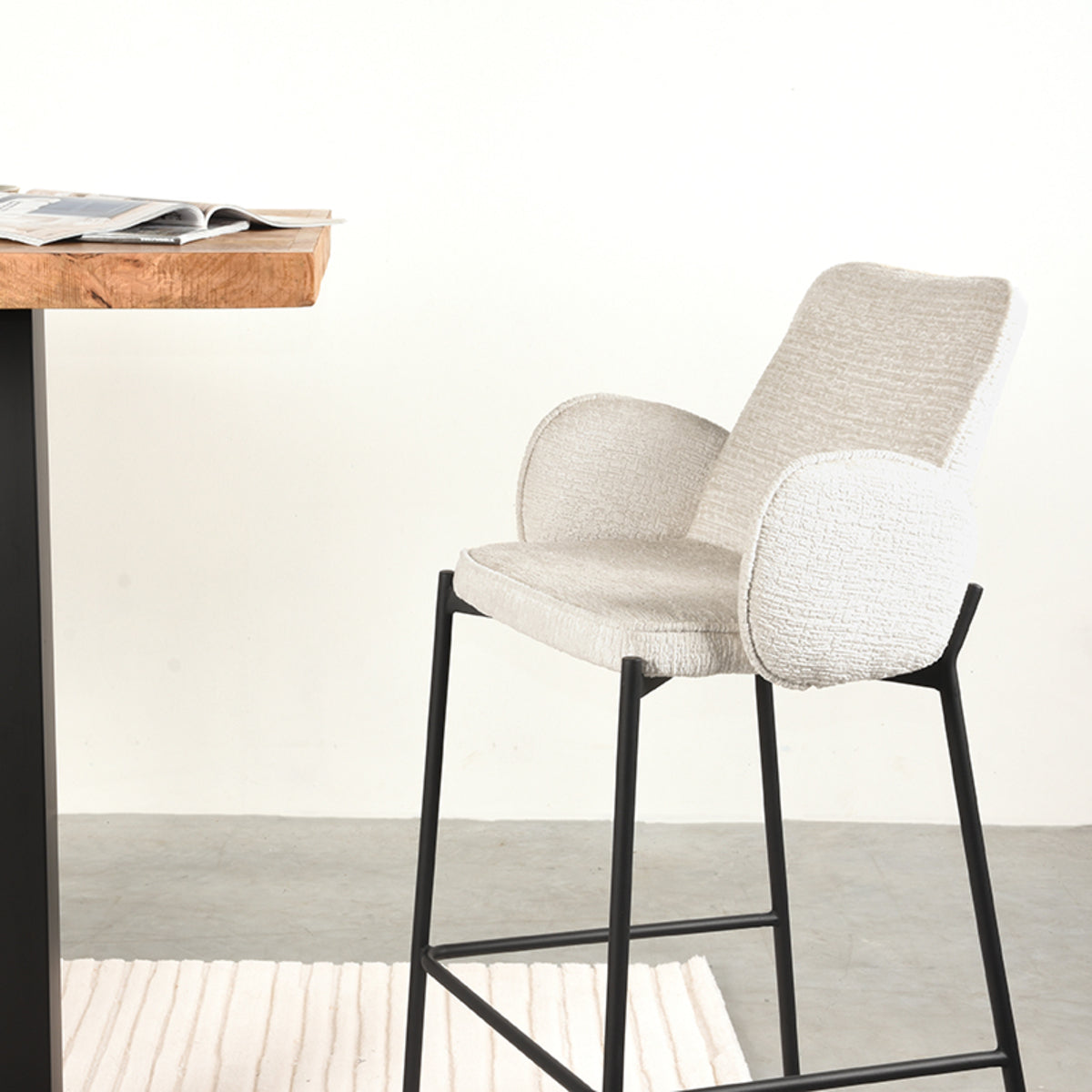 De hoogte van de zitting, gemeten vanaf de vloer. De ideale zithoogte bevindt zich tussen de 40 en 46 cm. Je zit het lekkerst met een ruimte van ongeveer 20 cm, tussen de stoelzitting en de onderkant van het tafelblad.