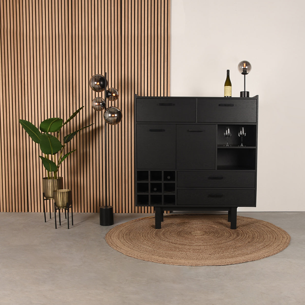 LABEL51 - Hoge Kast Cali - Zwart Eiken - Zwart Metaal
