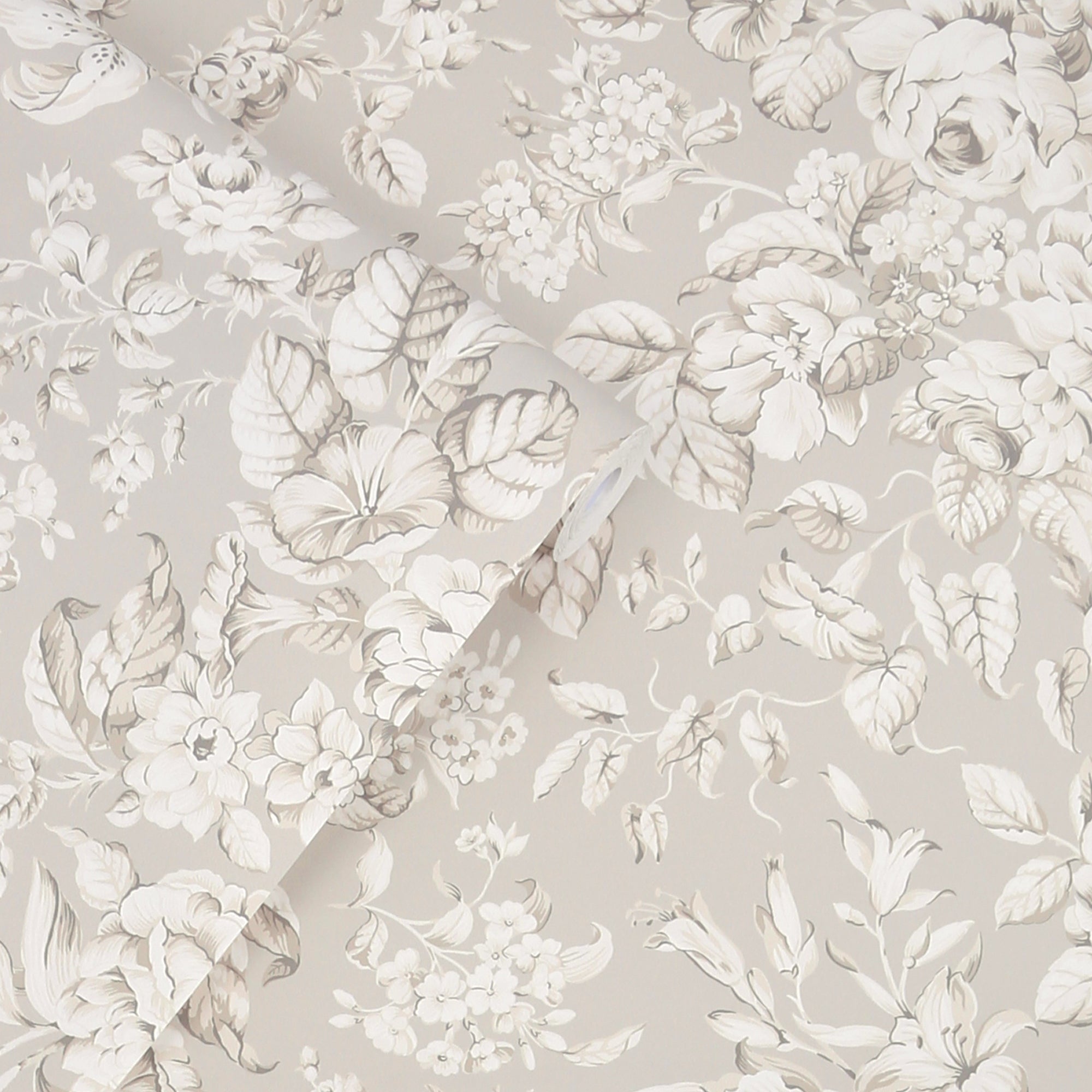 Deze romantische bloemenprint is geïnspireerd op een stuk uit het Laura Ashley-archief uit het begin van de jaren 2000. Heledd Blooms is een ton-sur-ton dessin met een overvloed aan rozen, lelies en hortensia's die met elkaar verweven zijn en het dessin volgen.