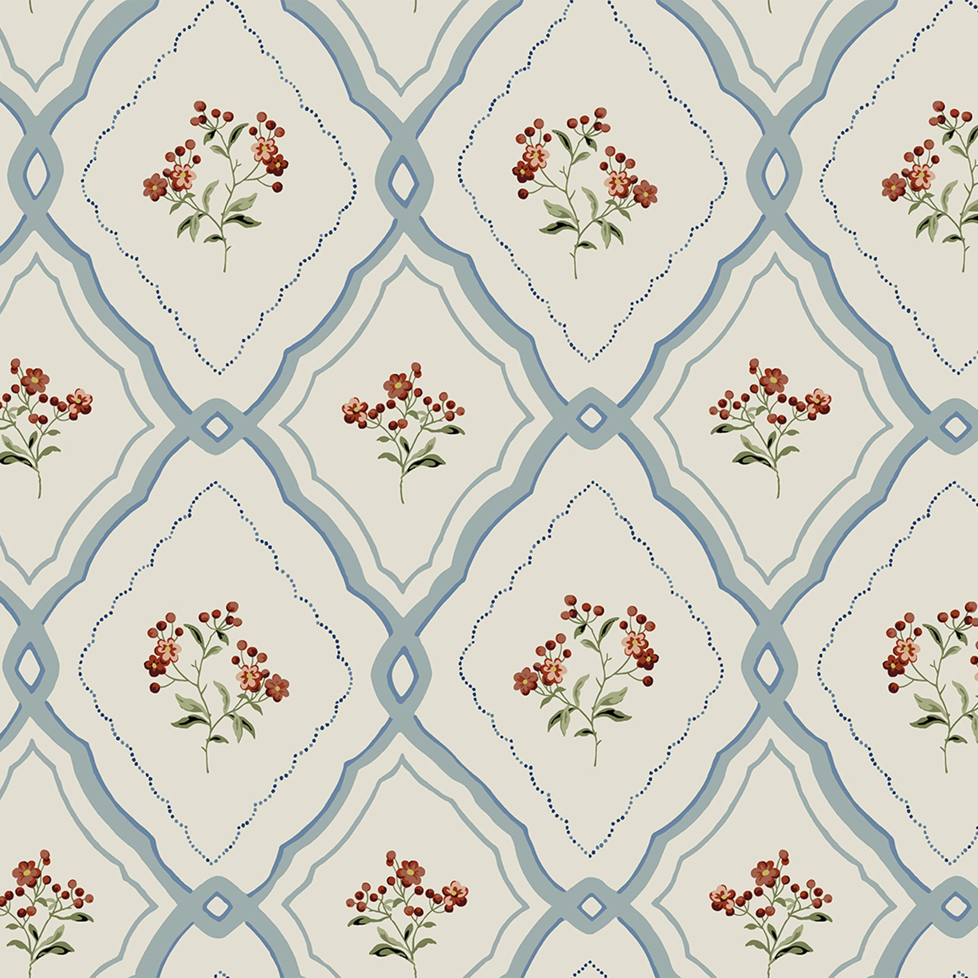 Laura Ashley Pinford Trellis Behang - Bloemen - 10mx52cm - Blauw