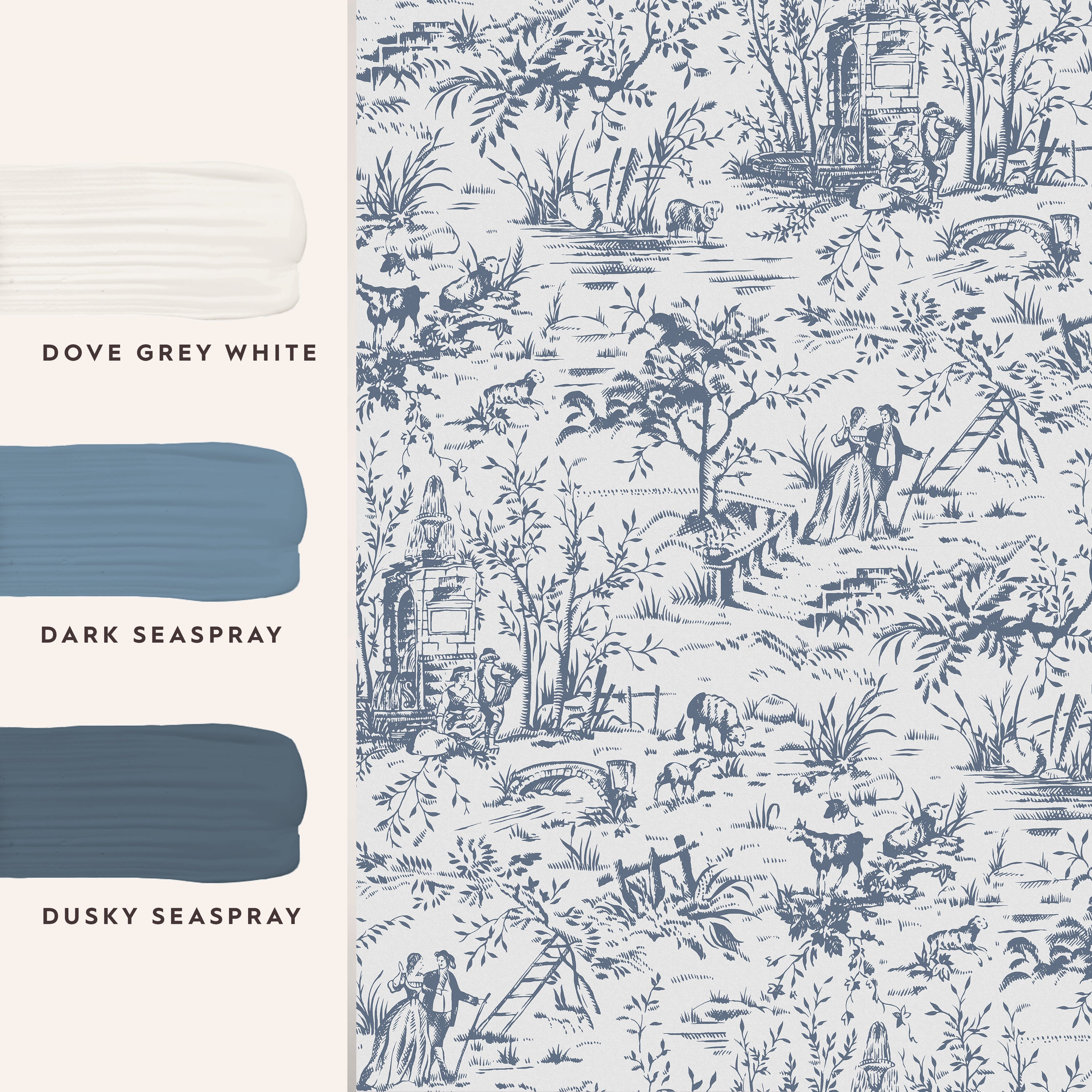 Laura Ashley Toile de Jouy Behang - Dieren - 10mx52cm - Blauw
