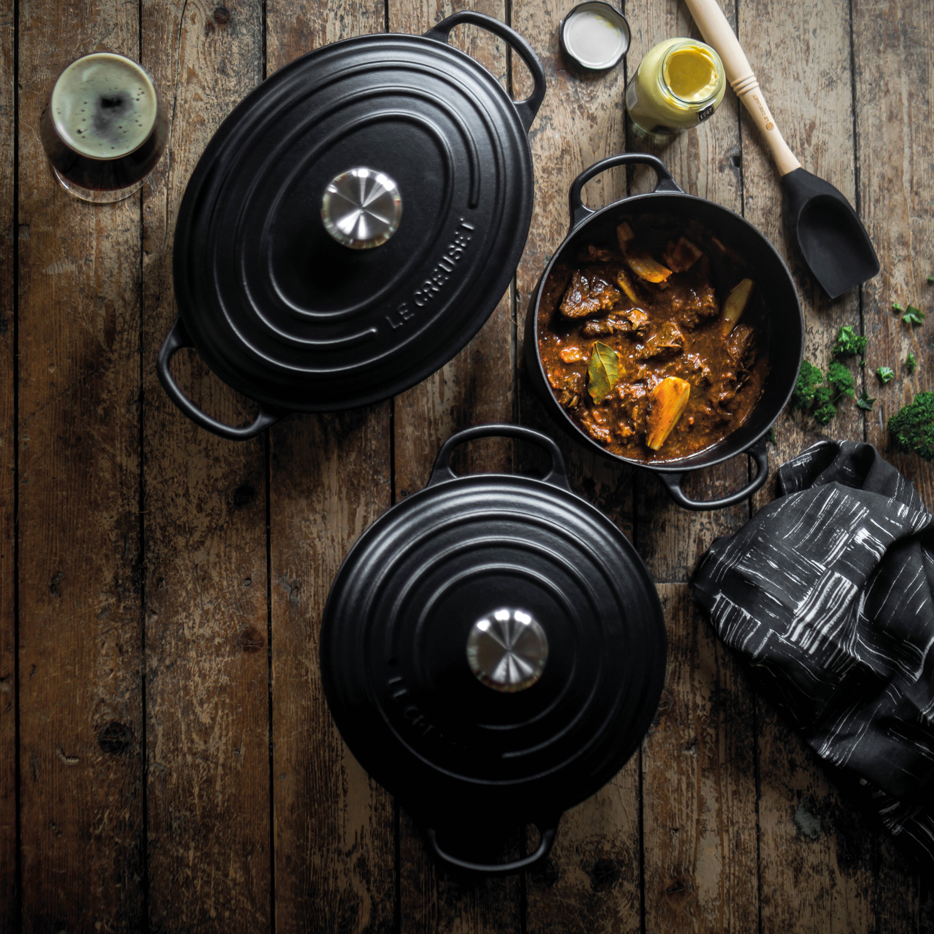 Handig, zo’n deksel Ook de deksel biedt mogelijkheden voor de pan. Deze kan ook in de oven en de knop kan temperaturen aan tot 160°C. Aangezien de deksel dezelfde wanddikte heeft als de pan, is deze belangrijk bij het gelijkmatig verdelen van de warmte. Door het gietijzer wordt ook warmte gelijkmatig verdeeld op kleine hittebronnen.