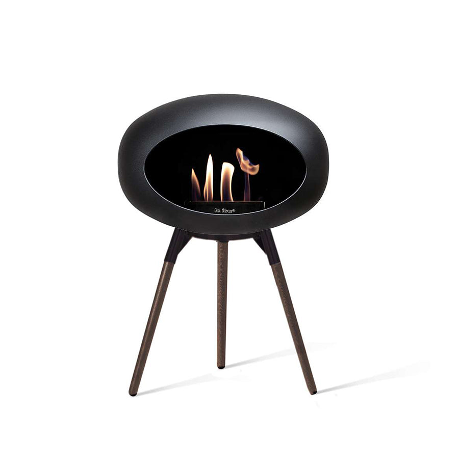 Het ‘tripod’ onderstel van Deens handbewerkt hardhout of exclusief Rose gold-staal geeft de elegante Le Feu Ground High een onderscheidende stijl, die de sfeervolle warmte van de koepel extra ondersteunt.