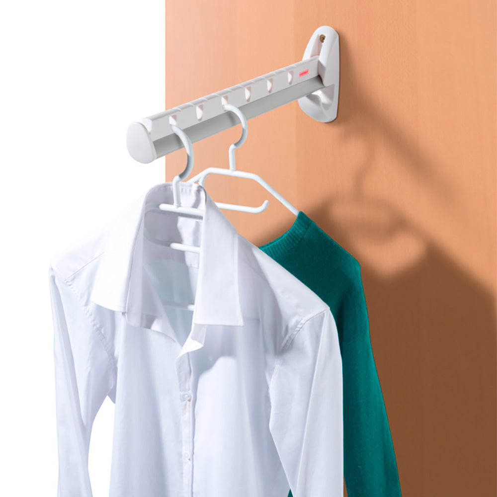 Leifheit kledinghanger rail Airette Ga voor gemak met deze kledingrail van Leifheit! De Airette heeft een praktische vormgeving met plaats voor zeven hangers. Hierdoor hang je overhemden en pakken netjes op. De afgesloten gaatjes voorkomen bovendien dat de hangers vallen.